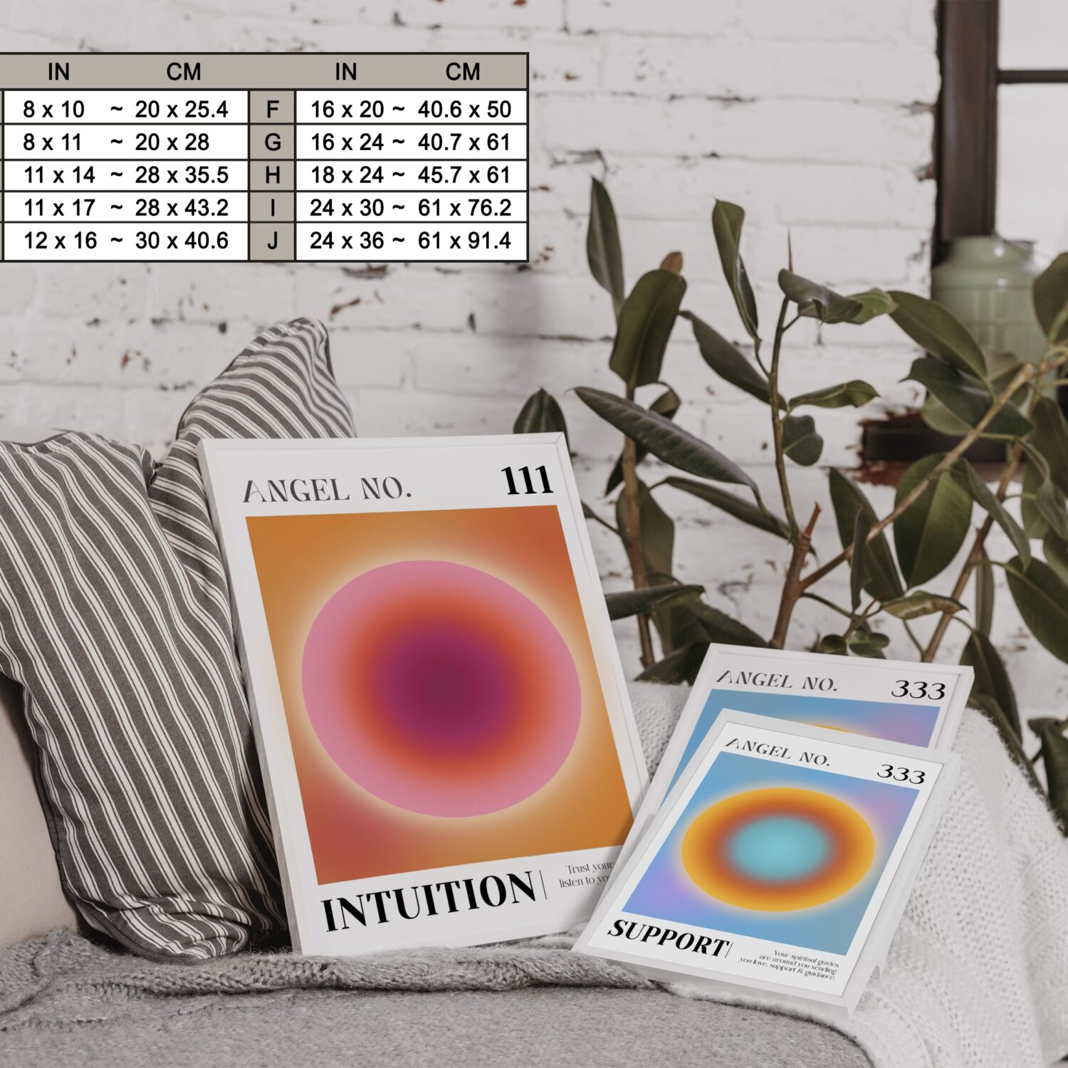Embrace the power of Angel Number 111 with this captivating angel number poster. Representing intuition, new beginnings, and alignment, this piece is a beautiful reminder to trust your gut and follow your heart. The mesmerizing grainy gradient design radiates warmth and positive energy, making it a perfect addition to any sacred space.