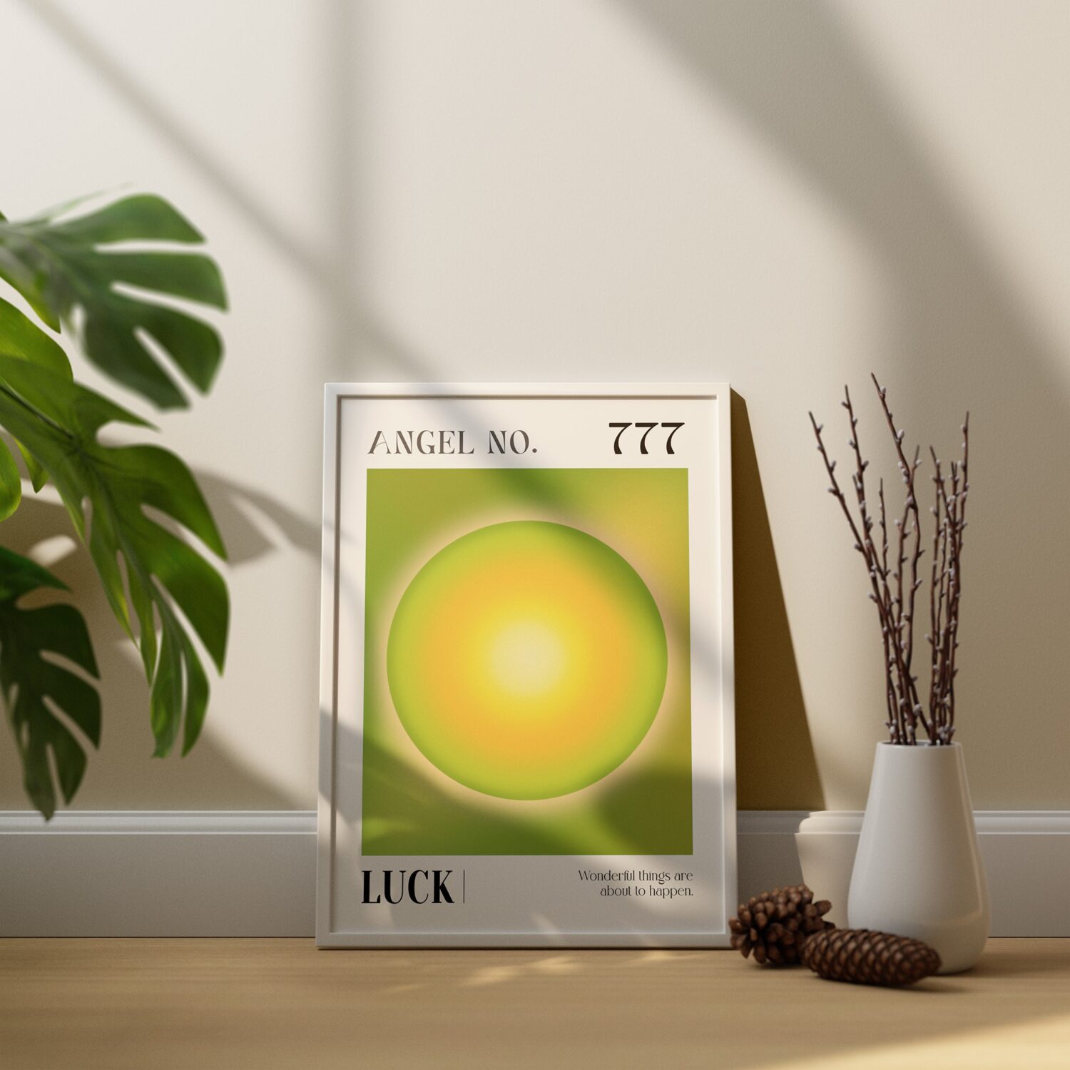 Let this angel number 777 print be a gentle nudge from the universe-your luck is shifting, and brighter days are ahead. Bring this meaningful wall art decor into your life and welcome abundance today.
