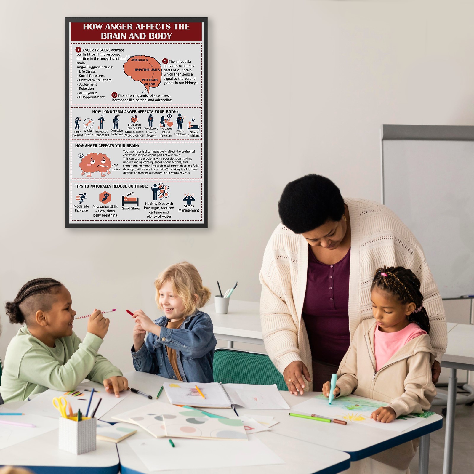 Understanding the science behind anger is key to emotional regulation. This educational tool visually explains how anger triggers the brain and body, highlighting its long-term effects on health. Ideal for calm corners, therapy offices, classrooms, and counseling sessions, this printable handout offers insights into managing emotions effectively.