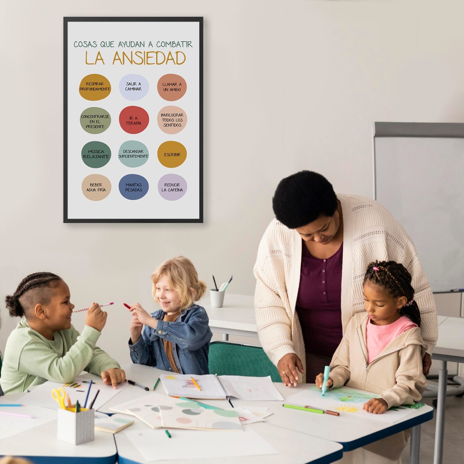 Support emotional well-being with this beautifully designed Spanish mental health poster, offering practical strategies to reduce anxiety (la ansiedad). This handout provides simple yet effective coping techniques such as deep breathing, mindfulness, and therapy. Perfect for therapy offices, school counseling rooms, and calm corners.
