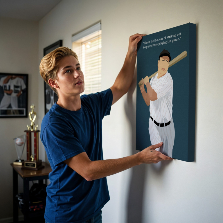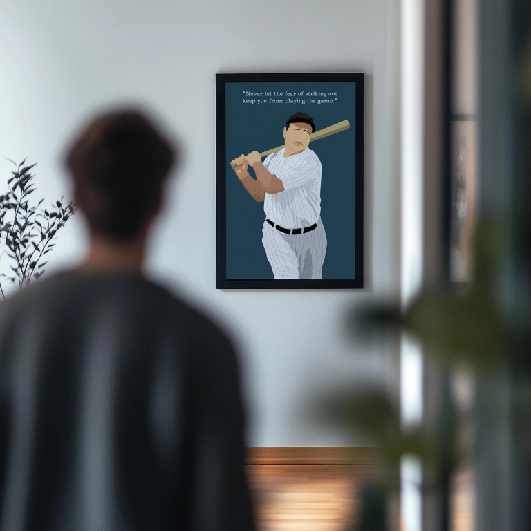 Babe Ruth Motivational Baseball Superstar Wall Art: Combine athlete quotes wall decor, and baseball iconic imagery into your living space