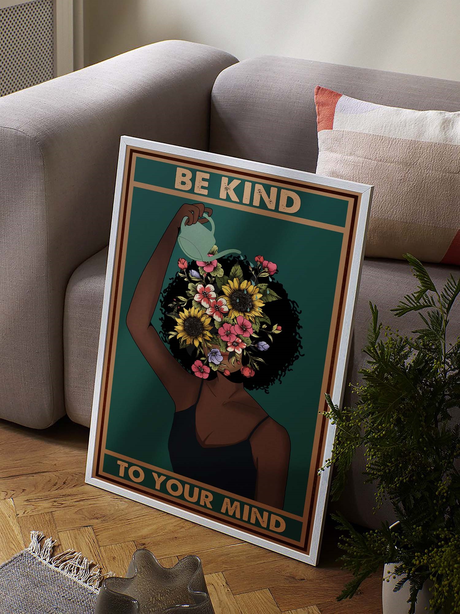 Bring a sense of peace and positivity to your space with this Be Kind to Your Mind Printable, a beautiful expression of mental health awareness and self-growth. The artwork features a striking image of a woman with blooming flowers in place of her face, as she gently pours nourishment into her mind-a powerful representation of growth mindset and self-compassion. With its vintage art style and rich, earthy tones, this piece blends aesthetics with meaning, making it perfect for any space that fosters mindfulness and healing.