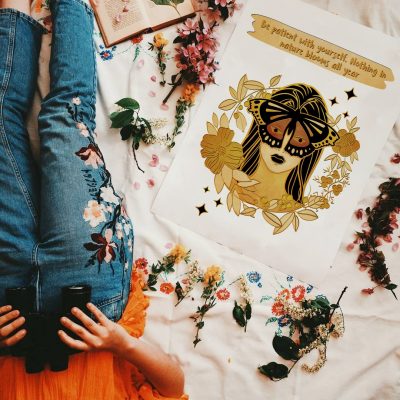 Life, like nature, moves in cycles-growth, rest, renewal. This stunning psychedelic art print embodies that message with a golden-hued design featuring a woman adorned with a butterfly mask, symbolizing transformation and self-acceptance. The quote, “Be patient with yourself. Nothing in nature blooms all year,” serves as a powerful reminder to honor your journey, embrace rest, and practice self-love.