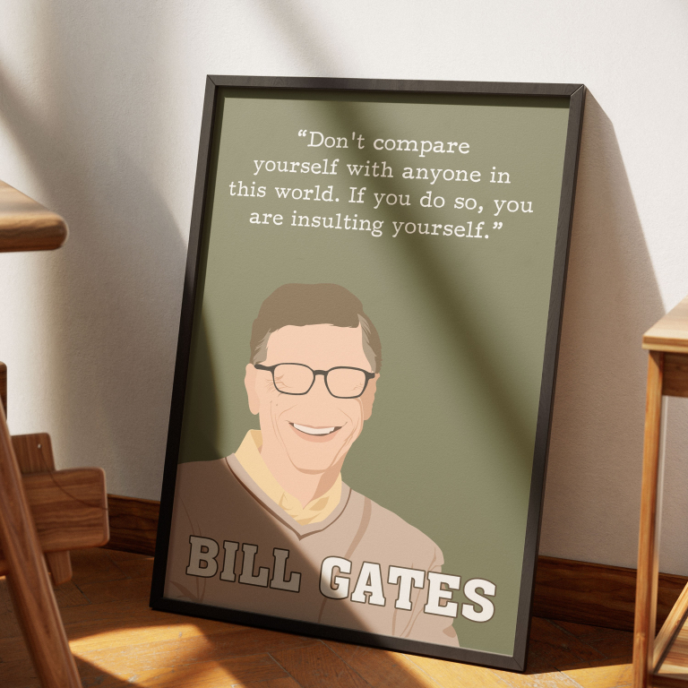 This entrepreneur quotes poster captures the essence of quiet strength and self-assurance, reminding us that true leadership starts with inner confidence. Featuring a minimalist vector portrait set against a muted olive backdrop, it blends modern simplicity with timeless wisdom-perfect for office decor or creative workspaces.