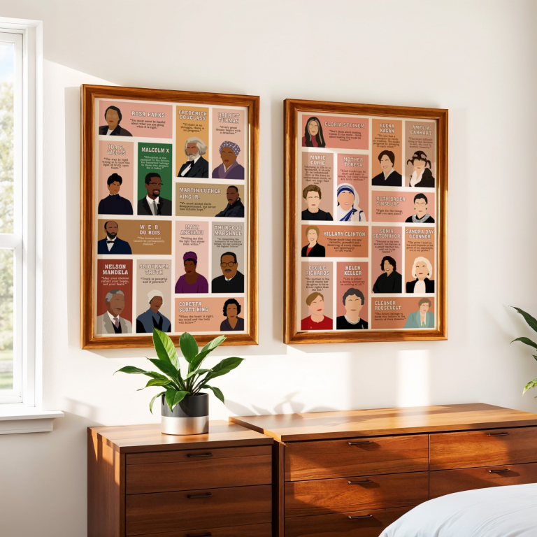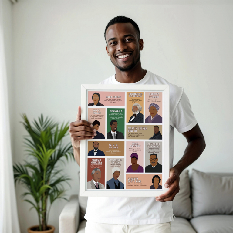 Black History Changemakers Hand-drawn Wall Art honors inspiring leaders empowering decor for any space.