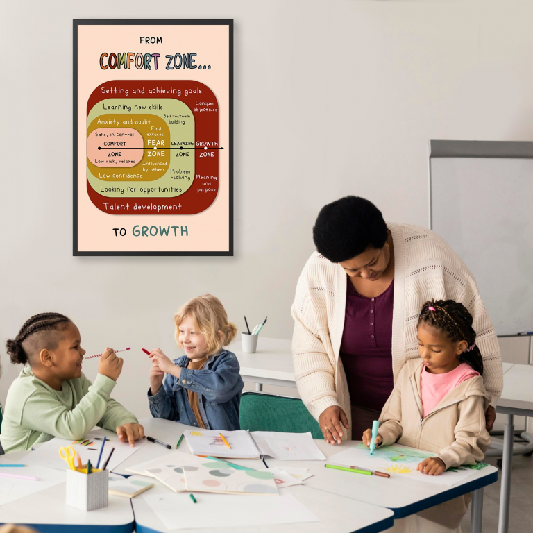 Comfort Zone boho art print can serve as a fantastic visual. Ideal for therapists, counselors, psychologists, teachers, and parents.