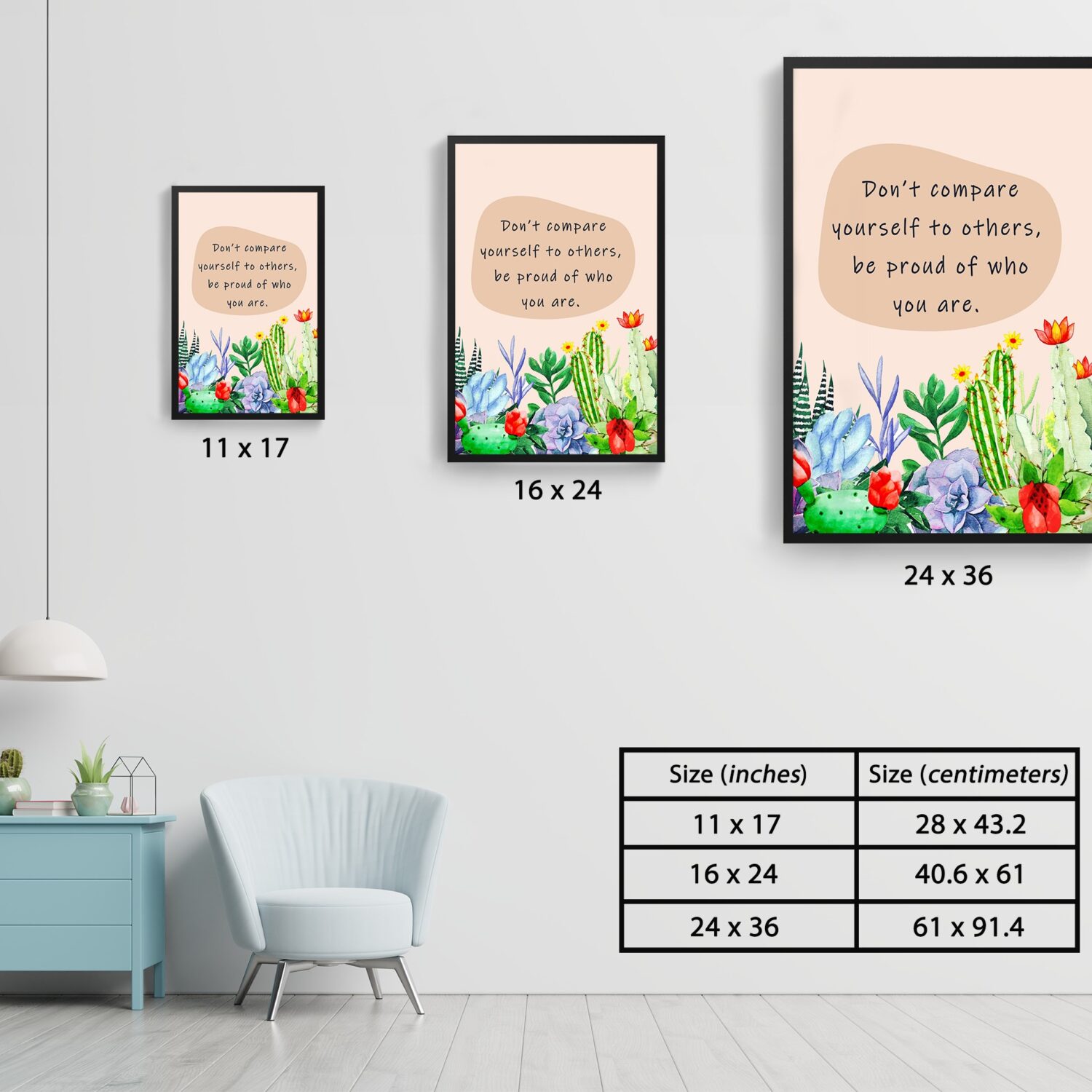 Don’t compare yourself growth mindset quote wall art brings an inspiring and artistic presence to your space.