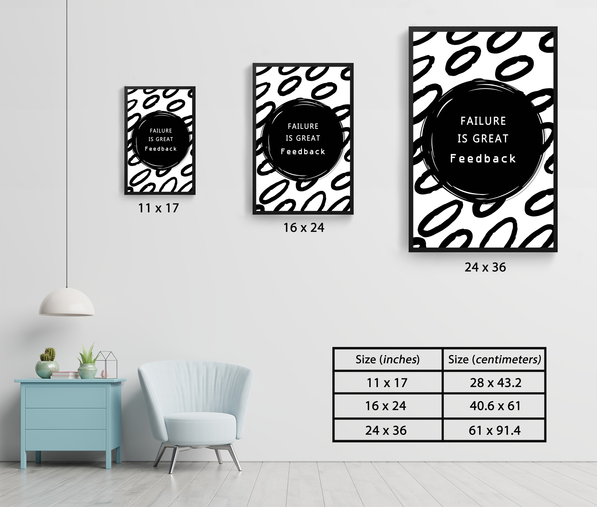 Let this motivational quote poster be your daily inspiration to embrace challenges. Add it to your space and turn failure into feedback for growth!
