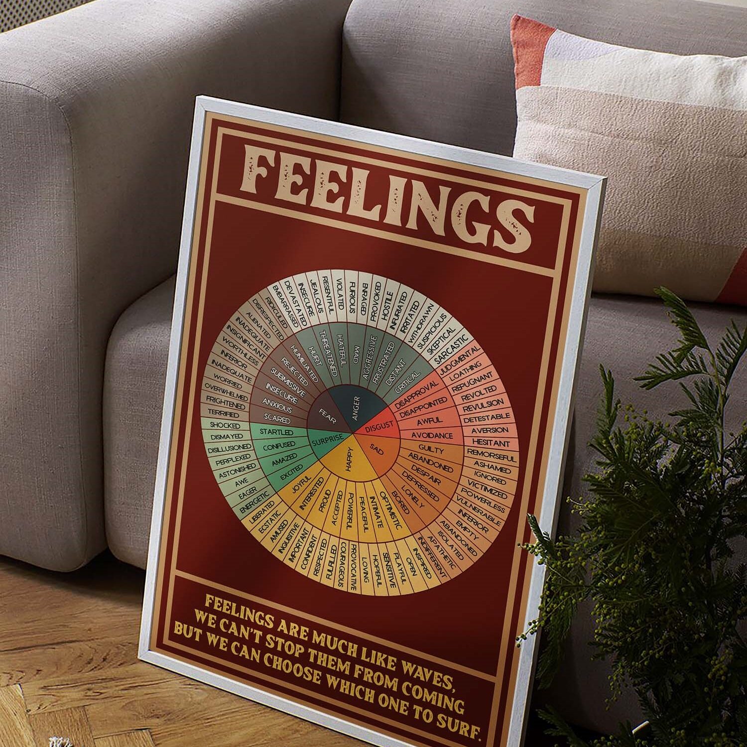Encourage self-reflection and emotional intelligence with this beautifully designed Feelings Wheel Printable. A valuable educational tool for therapy, counseling, and personal development, this chart helps individuals understand and express their emotions with clarity. Designed in a vintage art style with deep red and gold hues, it adds warmth and wisdom to any space.