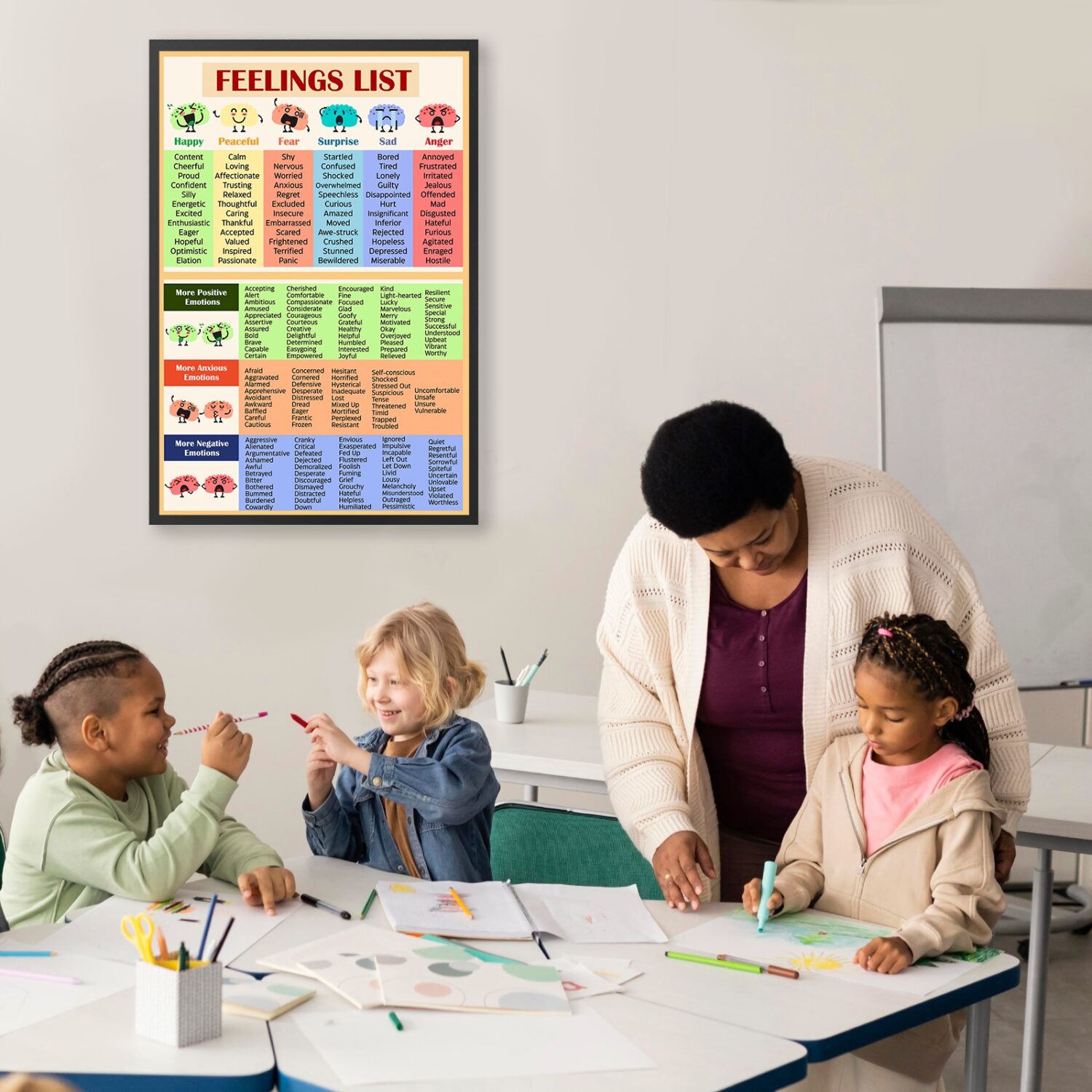 Enhance emotional literacy with this comprehensive Feelings List, a valuable SEL resource for therapists, school counselors, psychologists, and educators. This printable tool helps children and adults recognize and label their emotions, fostering emotional intelligence and self-awareness in any classroom, calm corner, or therapy setting.
