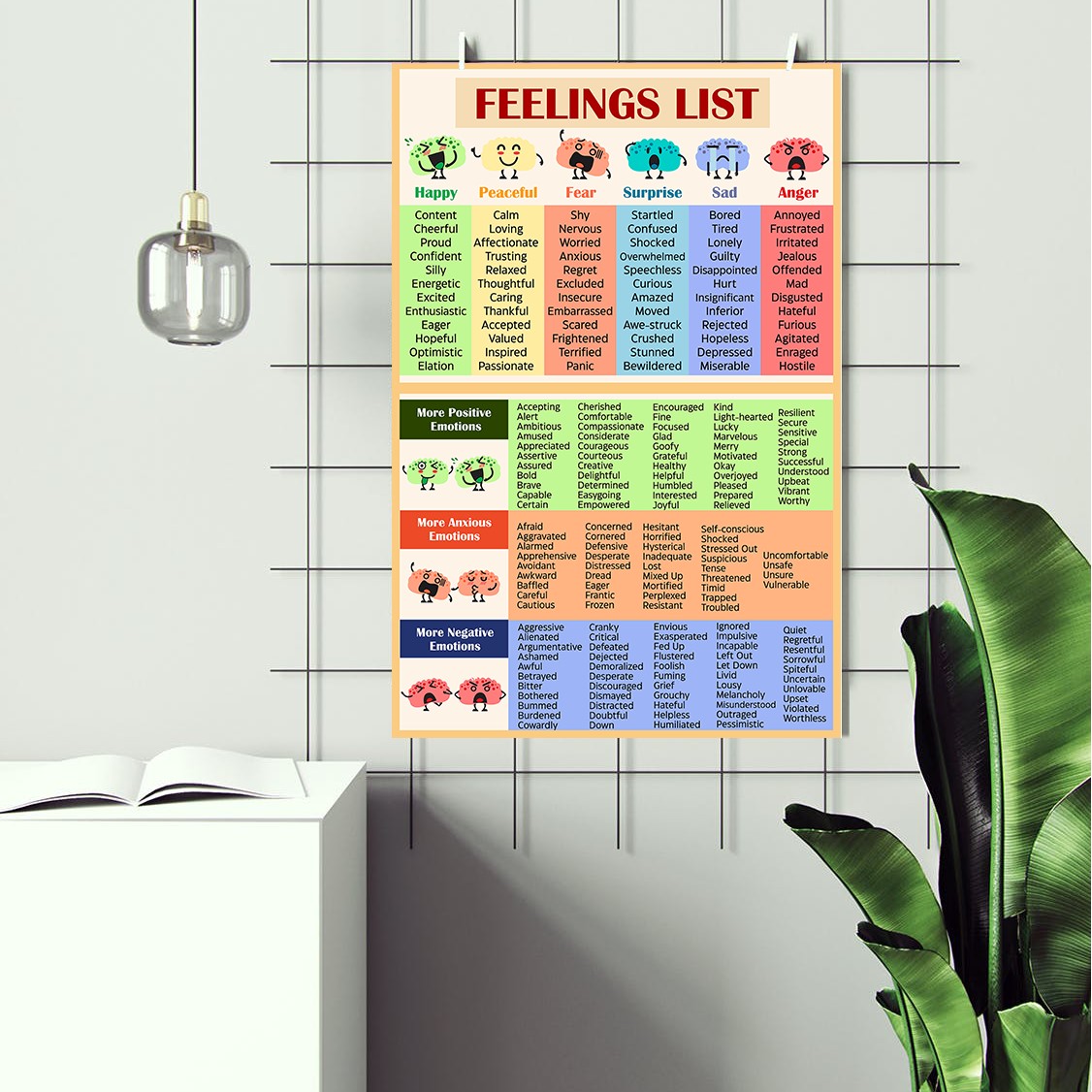 Enhance emotional literacy with this comprehensive Feelings List, a valuable SEL resource for therapists, school counselors, psychologists, and educators. This printable tool helps children and adults recognize and label their emotions, fostering emotional intelligence and self-awareness in any classroom, calm corner, or therapy setting.