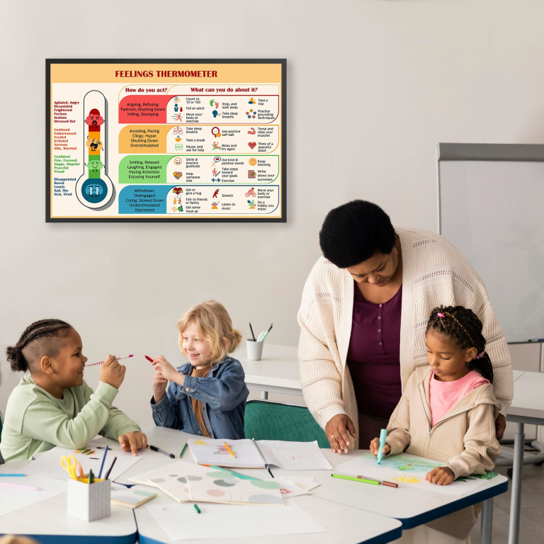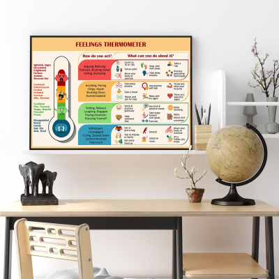 Feelings Thermometer mental health art print can serve as a fantastic visual. Ideal for therapists, counselors, psychologists, teachers, and parents.