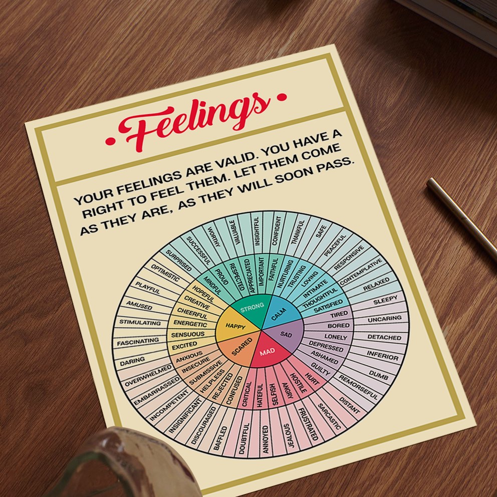 Support mental health awareness and emotional growth with this thoughtfully designed Feelings Wheel Printable. A valuable educational tool for SEL (Social-Emotional Learning), therapy, and self-reflection, this chart helps individuals recognize and articulate their emotions. The soft vintage tones and elegant typography create a calming and welcoming aesthetic.