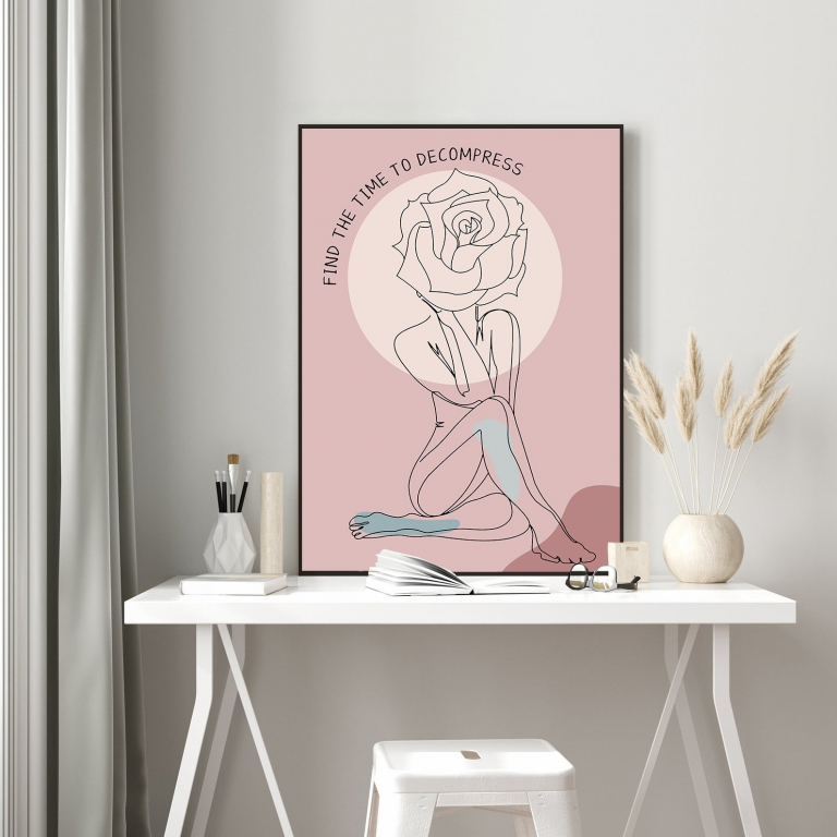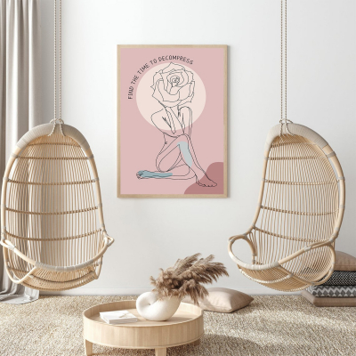 In the midst of life’s chaos, this elegant mental health poster serves as a visual cue to slow down and embrace self-care. Featuring a delicate line-art figure with a blooming rose in place of a head, it symbolizes the beauty of mental health awareness and the importance of finding moments of peace. The soft pink mental health tones and minimalistic design create a calming aesthetic, making it a perfect addition to any mindful space.