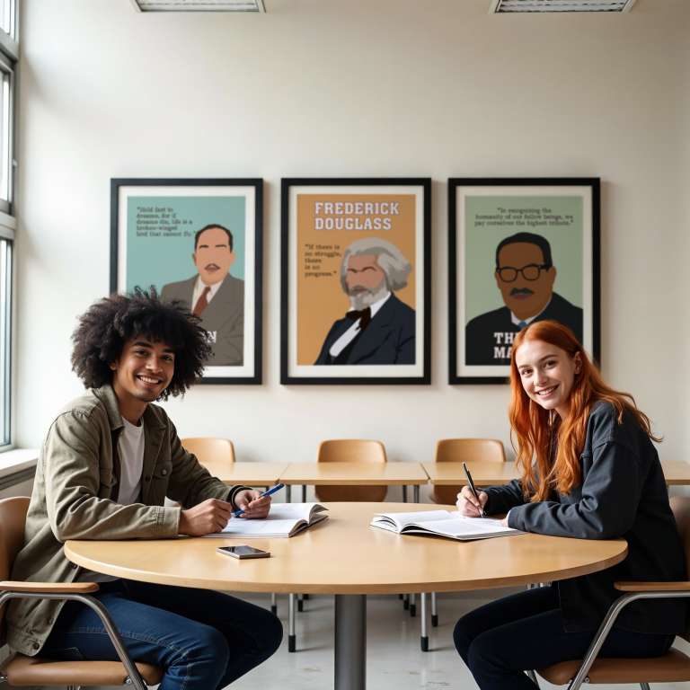 This learning poster is a bold tribute to perseverance and progress, featuring a powerful quote from a prominent historical figure. Designed in a clean, minimalist style with warm, earthy tones, the artwork honors a Black author and men leader whose voice echoes through Black History Month and beyond.