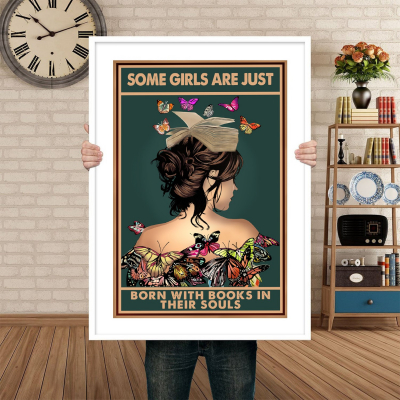 Celebrate the magic of reading books with this captivating artwork, perfect for book lovers and dreamers alike. Featuring a woman adorned with fluttering butterflies and an open book seamlessly woven into her hair, this piece embodies the transformative power of literature. The vintage art style and rich colors create a mesmerizing aesthetic, making it an inspiring addition to any space dedicated to mental health awareness and self-growth.