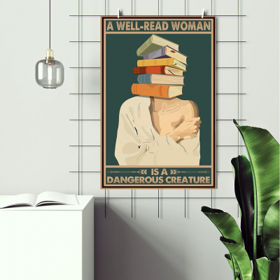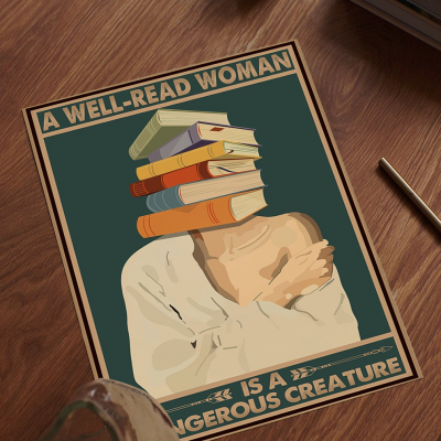 Celebrate intellect and curiosity with this striking reading books artwork. Featuring a poised woman with a stack of books as her head, this piece symbolizes the transformative nature of literature and the strength that comes from knowledge. The vintage art style, warm earthy tones, and minimalist elegance make it a powerful statement for those who believe in the magic of learning, self-growth, and mental health awareness.