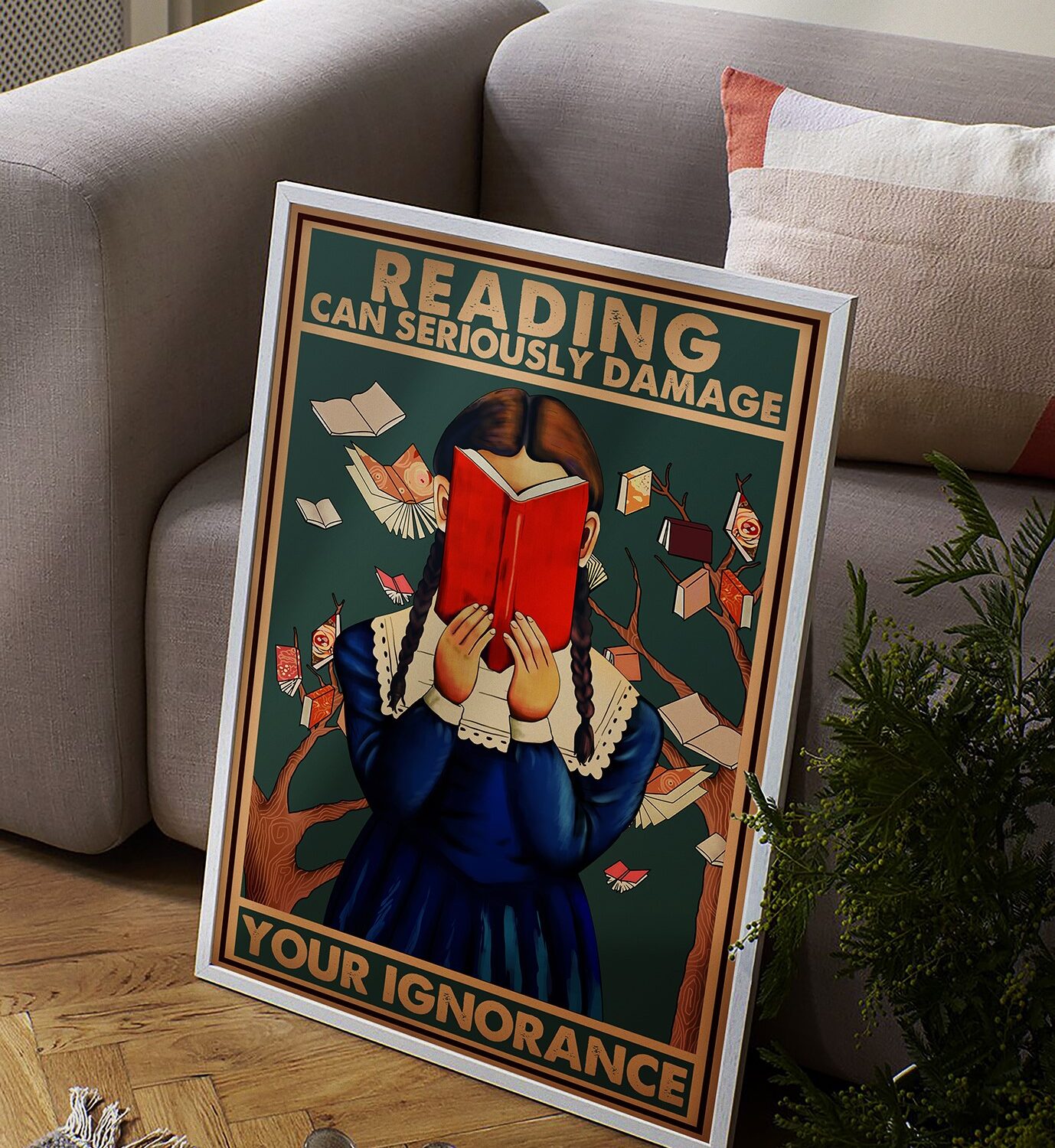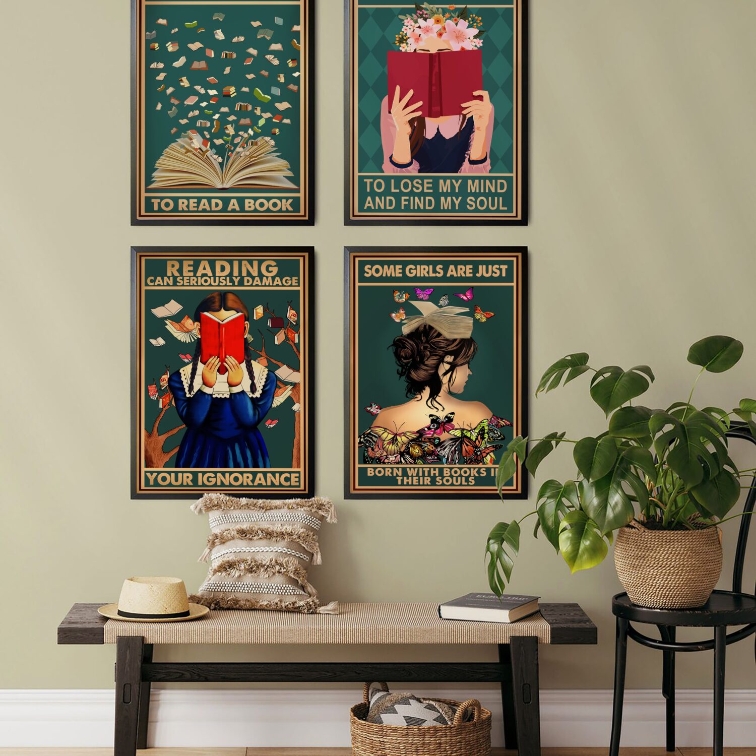 Embrace the transformative power of reading books with this bold and thought-provoking printable. Featuring a young girl absorbed in a book, surrounded by a whirlwind of flying pages, this artwork serves as a reminder of the impact literature has on expanding minds. With a vintage art style and a striking color palette, this piece is perfect for book lovers, educators, and anyone who values mental health awareness and lifelong learning.