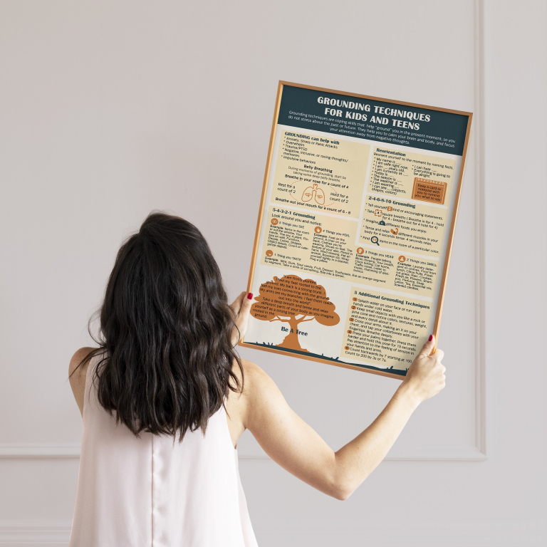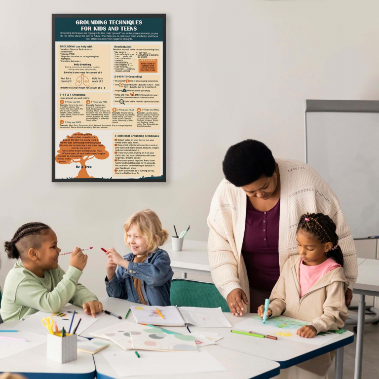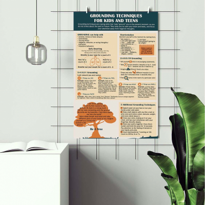 Help individuals manage anxiety, trauma, and overwhelming emotions with this engaging and practical grounding techniques guide. This Art Print resource provides structured methods such as the 5-4-3-2-1 technique, belly breathing, and sensory reorientation to help individuals stay present and regulate emotions. A perfect tool for school counselors, therapists, and educators, it fosters calm and mindfulness.