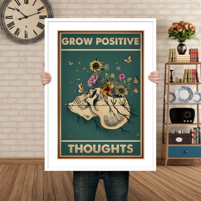 Embrace the power of a growth mindset with this captivating Grow Positive Thoughts Art Print. Featuring an artistic depiction of a blooming skull, this piece represents the journey of mental resilience-turning struggles into strength and challenges into opportunities. Lush wildflowers and delicate butterflies emerge from the skull, signifying renewal, transformation, and the beauty of cultivating positive affirmations. The vintage art aesthetic and earthy tones make this a striking addition to any space dedicated to mindfulness and self-improvement.