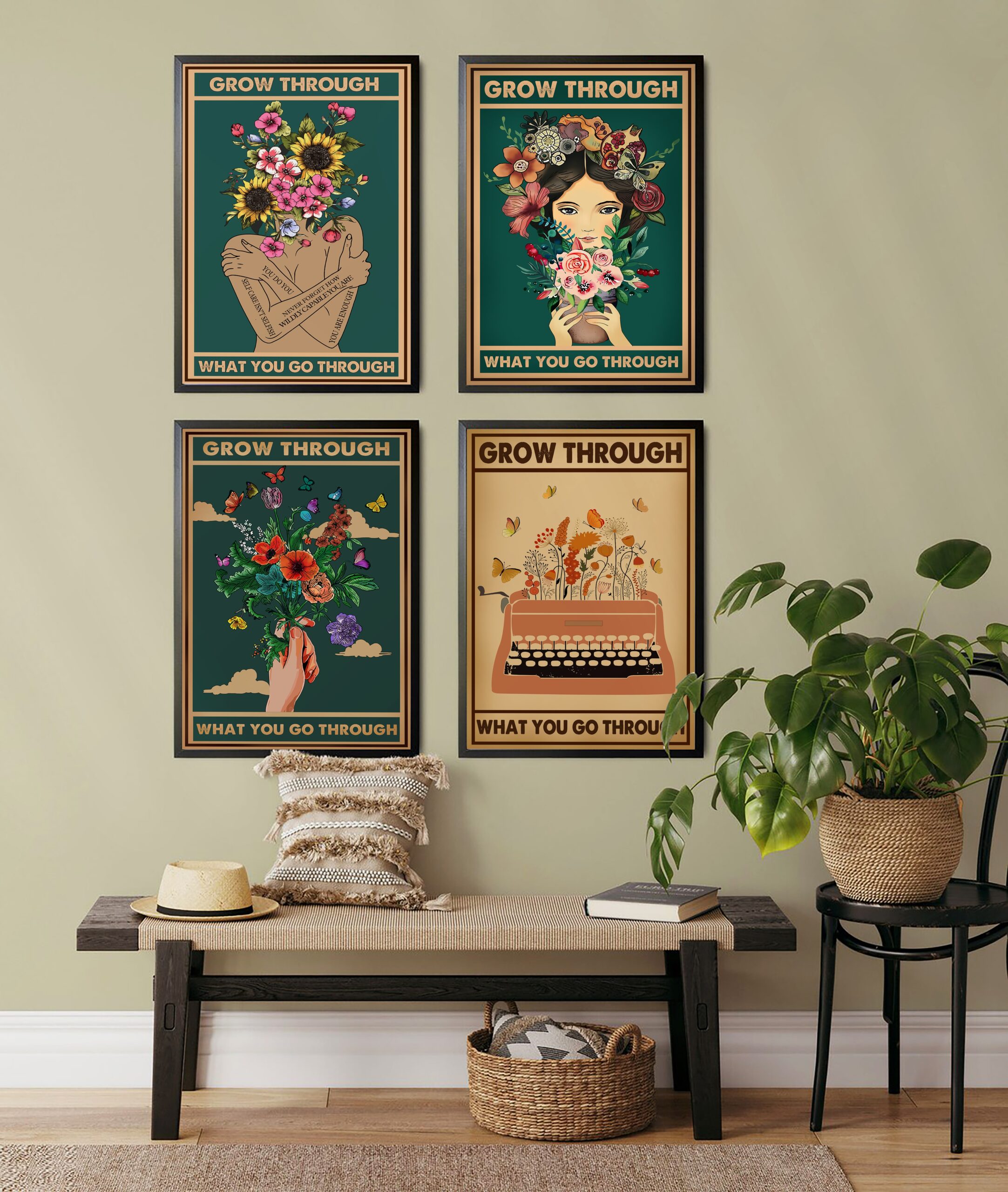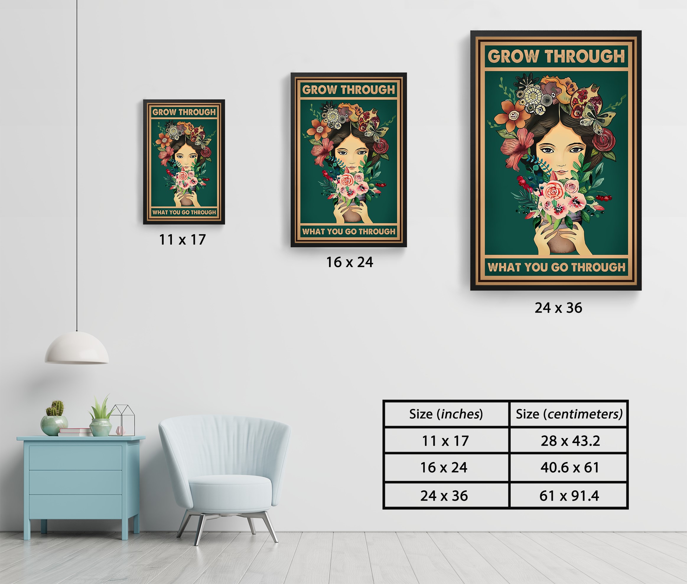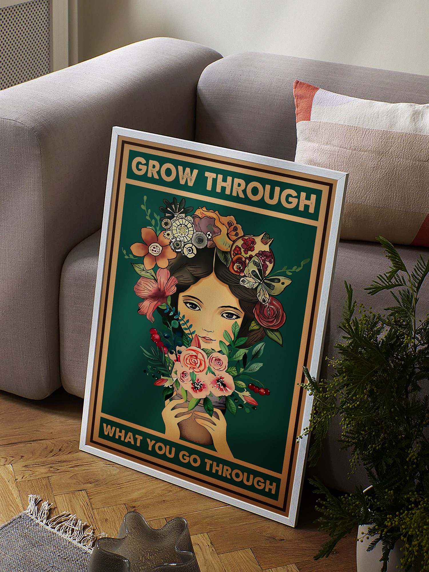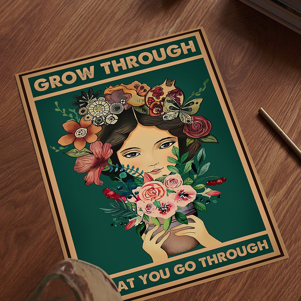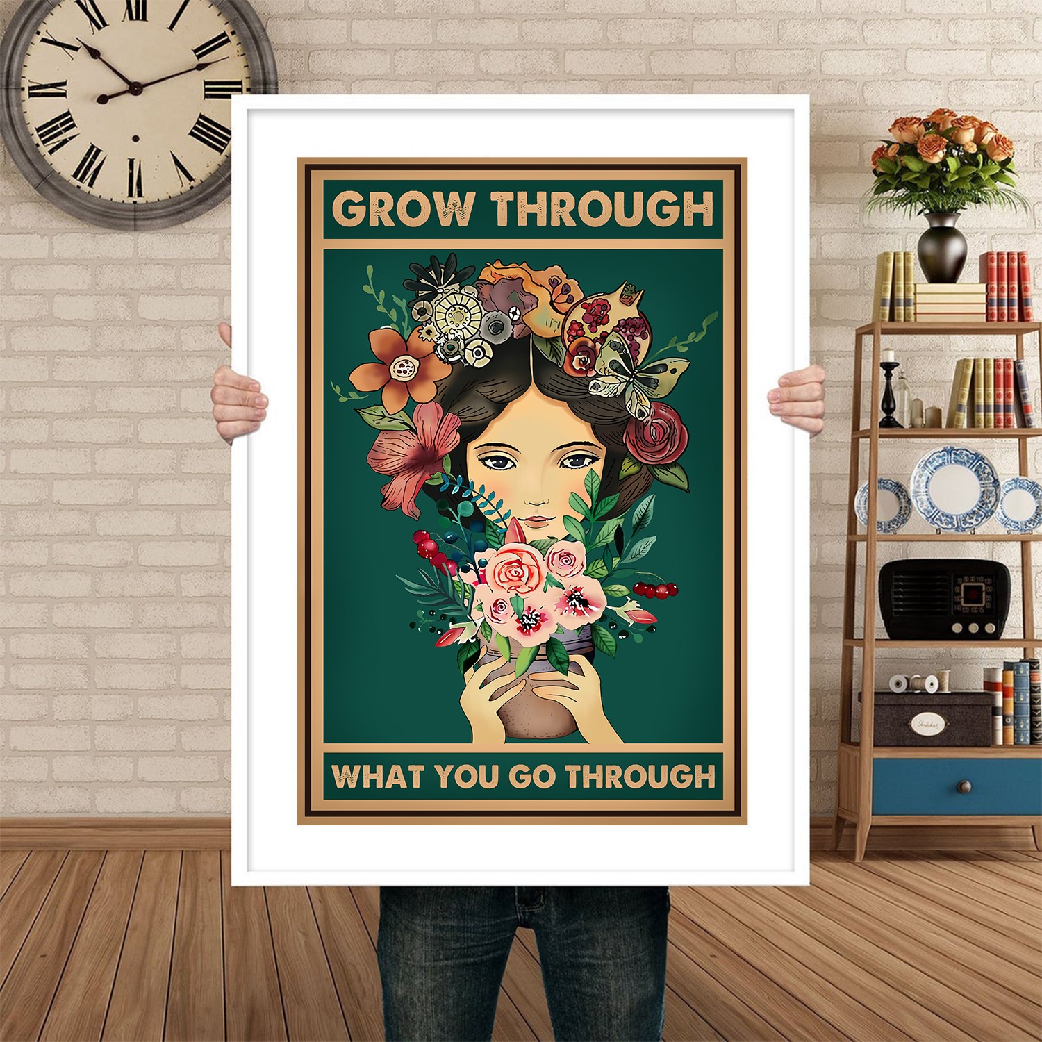 Embrace growth and resilience with this Grow Through Printable, a meaningful expression of mental health awareness and self-discovery. The artwork portrays a serene woman holding a flourishing bouquet, with intricate flowers and butterflies adorning her hair-symbolizing transformation, renewal, and inner strength. Designed in a vintage art style with rich earthy tones, this piece brings warmth and inspiration, making it an ideal addition to any space focused on mindfulness and self-care.
