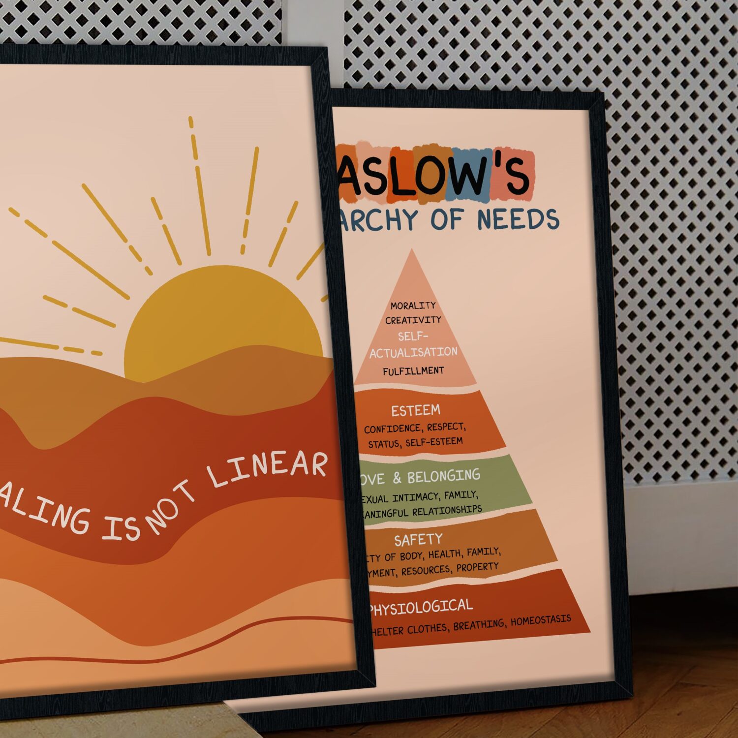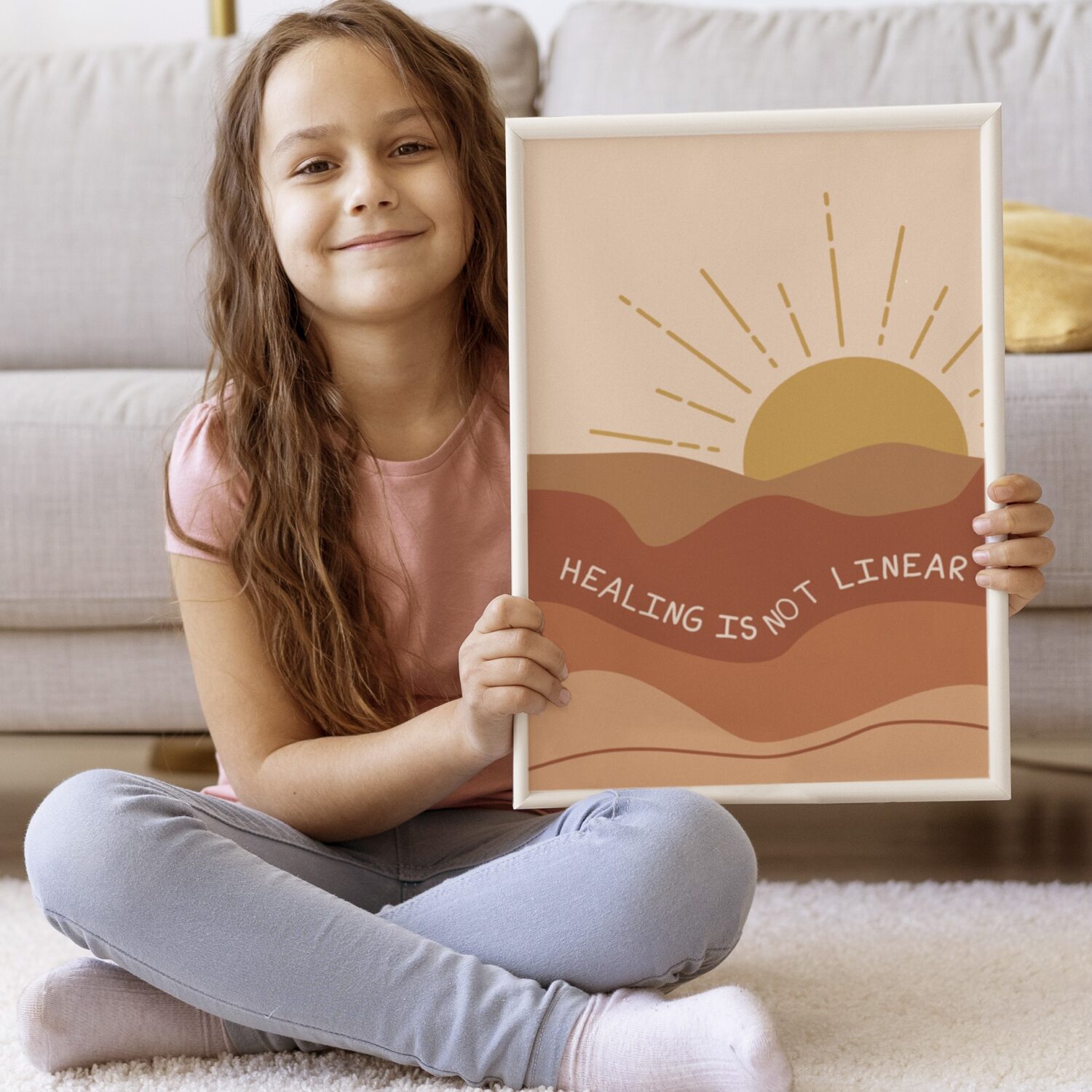 Embrace the journey of healing with this beautiful “Healing Is Not Linear” mental health poster. Designed in soothing earth tones with a warm sun rising over flowing hills, this boho-inspired therapeutic art serves as a gentle visual affirmation that progress comes in waves, not straight lines.