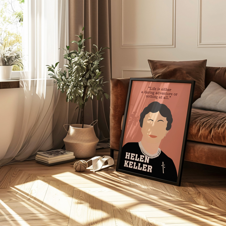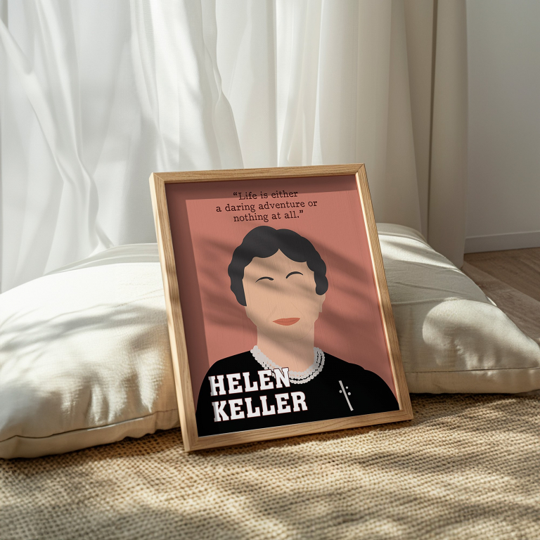 Helen Keller Powerful Women Hand-drawn Wall Art – A Tribute to Resilience & Courage