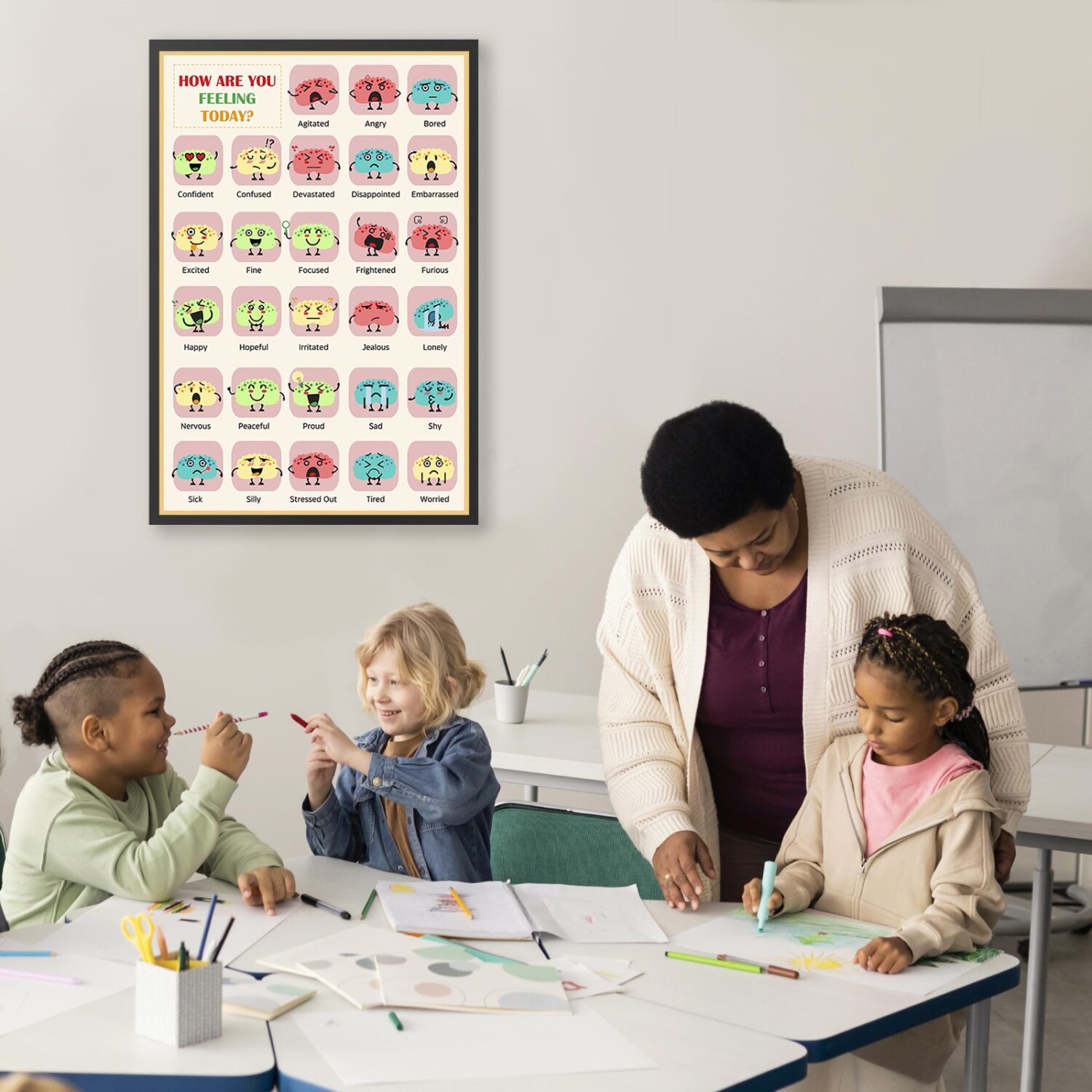Support emotional learning with this engaging and colorful feelings chart, designed for classrooms, therapy offices, and counseling spaces. With expressive, easy-to-understand illustrations, this SEL tool helps children and adults recognize, name, and communicate their emotions, promoting self-awareness and emotional regulation.