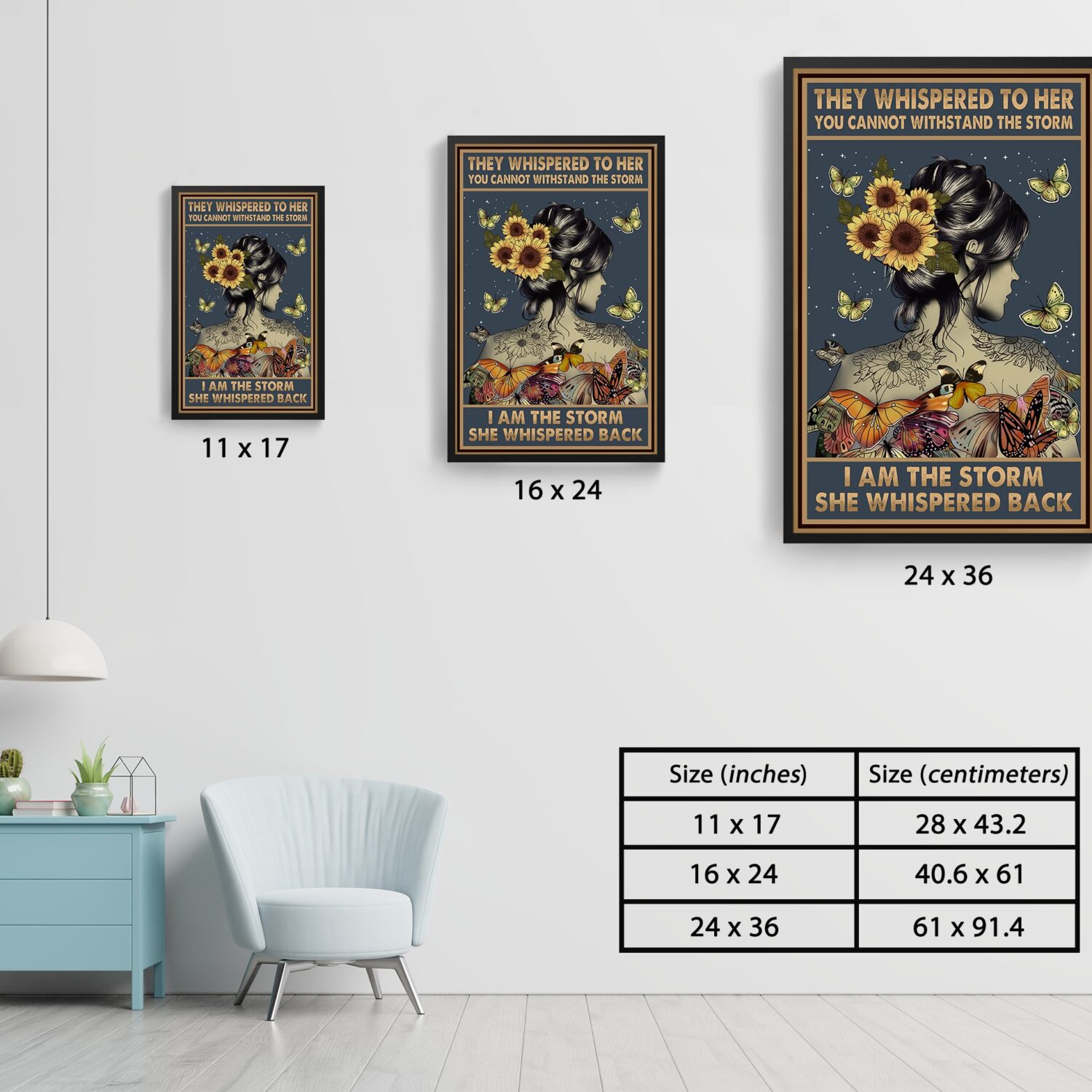 Embrace resilience with this captivating I Am the Storm Printable, a stunning fusion of mental health awareness and self-empowerment. The artwork features a woman with flowing hair adorned with sunflowers and butterflies, representing transformation, inner strength, and personal growth. The dark, celestial backdrop enhances its vintage art aesthetic, making it a profound statement piece for anyone seeking encouragement, healing, and a growth mindset.