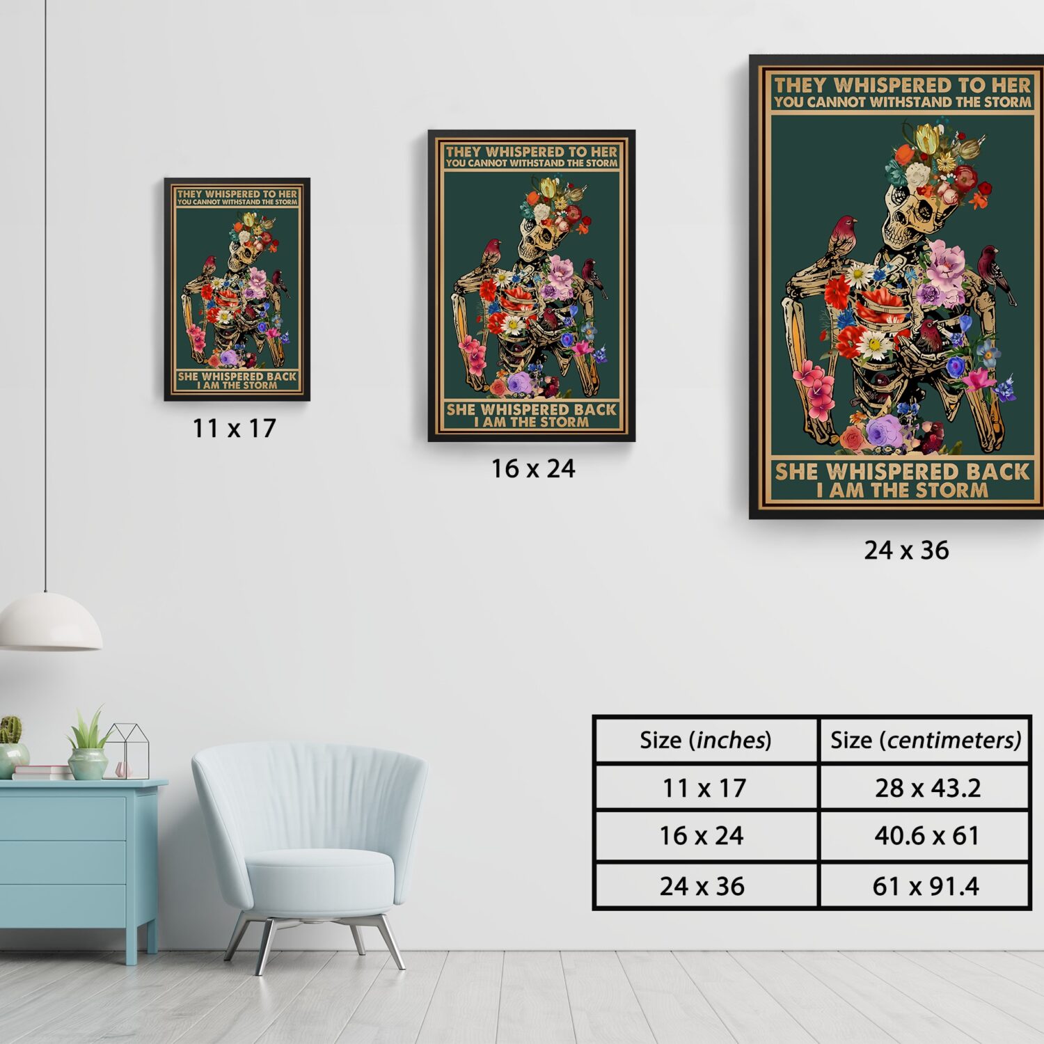 Embrace the power within with this striking I Am the Storm Printable. Featuring a skeletal figure blooming with vibrant flowers and surrounded by delicate birds, this artwork symbolizes transformation, growth, and unwavering strength. The intricate design blends vintage art with modern symbolism, making it a powerful statement piece for those on a journey of self-discovery and mental health awareness.