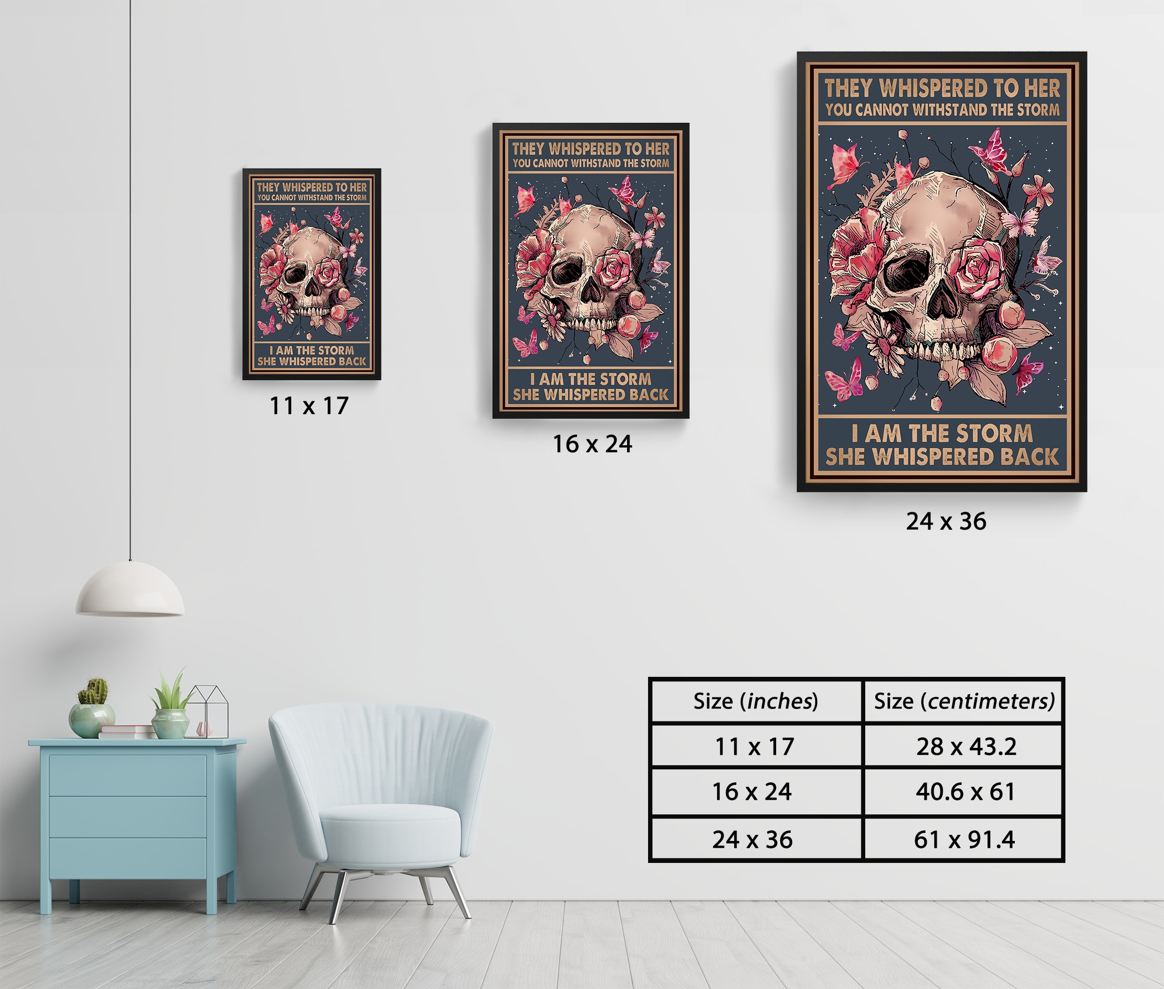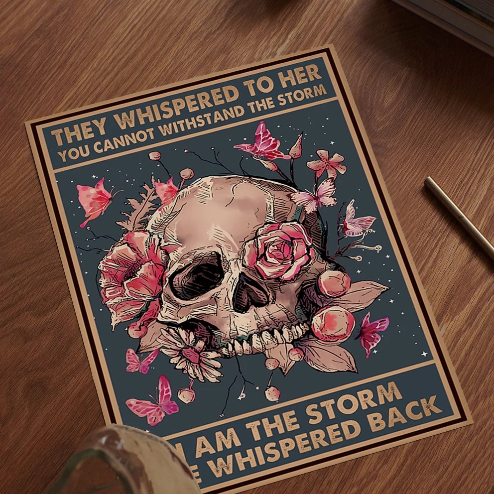Channel your inner power with this striking I Am the Storm Printable, blending vintage art with modern symbolism. Featuring a detailed skull adorned with blooming roses and delicate butterflies, this piece represents transformation, growth, and unwavering strength. The contrast between decay and life beautifully embodies the essence of mental health awareness and perseverance.