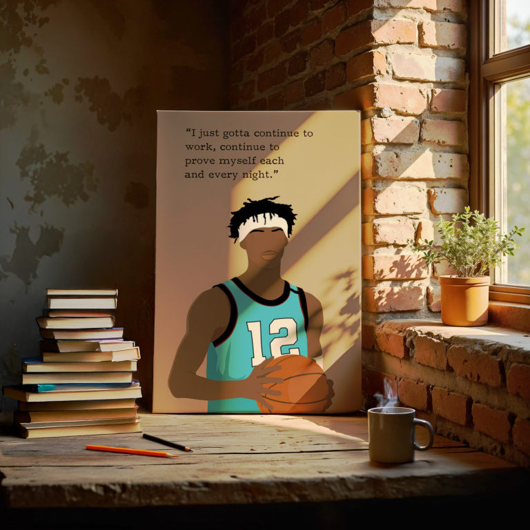 Ja Morant hand-drawn basketball wall art – Channel unstoppable drive.