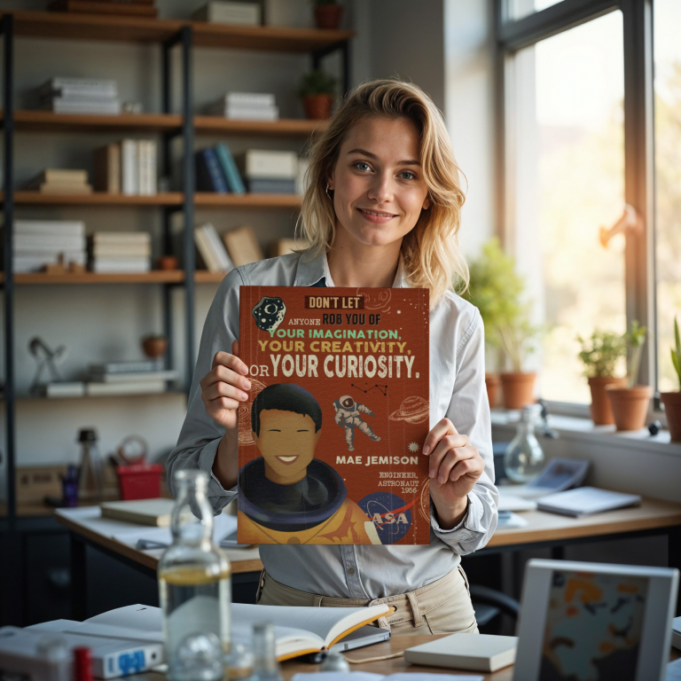 Fuel dreams and ignite ambition with this vibrant tribute to one of the most inspiring Black scientists in history. Featuring a space-themed design with constellations, planets, and a retro palette, this science decor invites all ages to embrace curiosity and creativity. A timeless piece of classroom decor or a gift for science lovers.