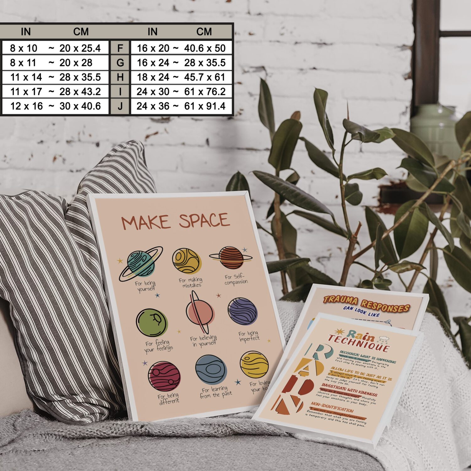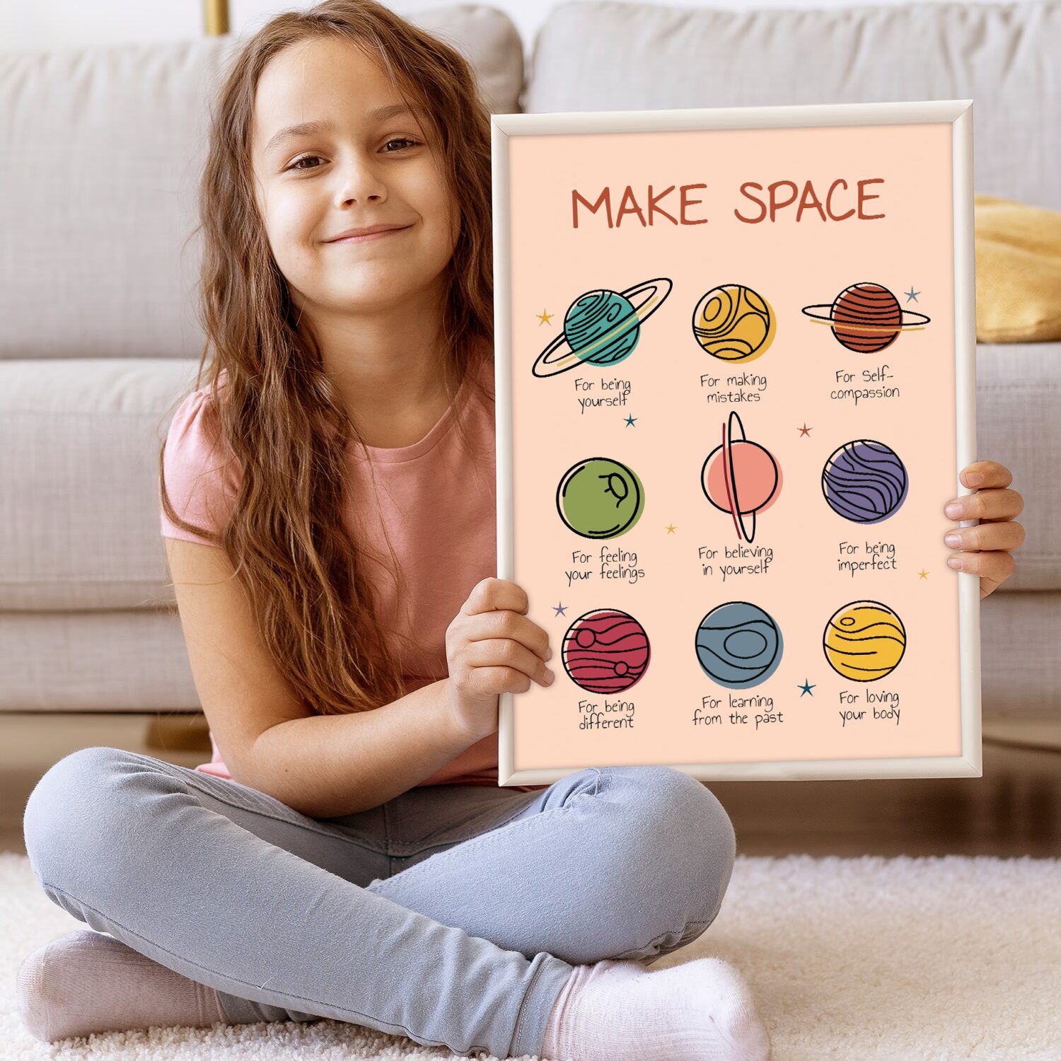 Encourage self-acceptance with this beautifully designed Make Space poster. Featuring a celestial-inspired theme, this boho mental health print reminds us to create space for self-compassion, growth, and emotional well-being. A perfect addition to calming corners, therapy offices, school counselor rooms, and classrooms, this poster serves as a gentle reminder to embrace imperfections and personal progress.