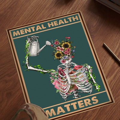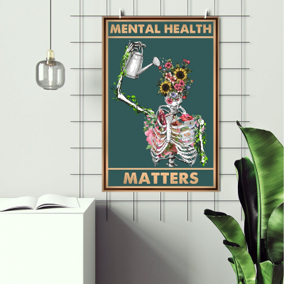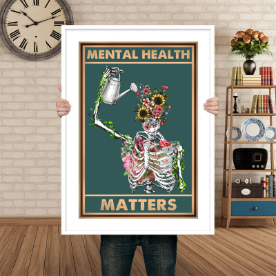 Let this Mental Health Matters Wall Art serve as a meaningful reminder that self-care and healing are essential. The striking artwork features a skeletal figure watering blooming flowers-a profound representation of resilience, transformation, and the beauty of inner growth. With its unique blend of vintage art and contemporary symbolism, this piece brings an impactful message of mental health awareness and self-compassion to any space.
