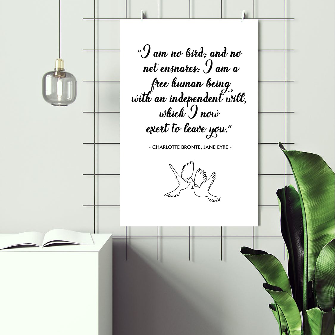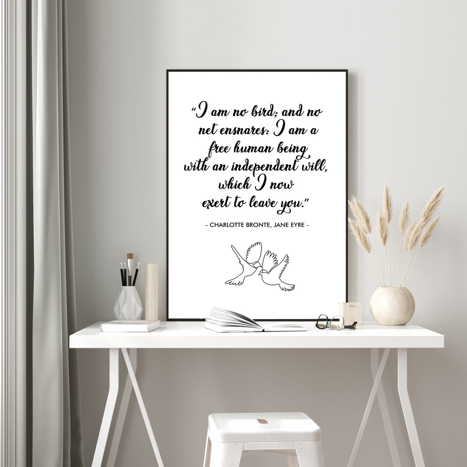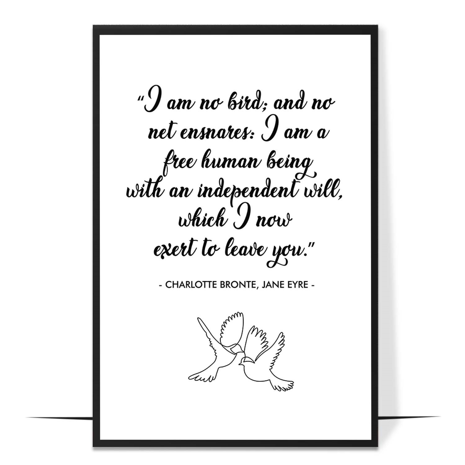 Embrace independence and strength with this elegant motivational wall art featuring a timeless quote from Charlotte Brontë’s Jane Eyre: “I am no bird; and no net ensnares: I am a free human being with an independent will.” This beautifully designed poster serves as a daily affirmation of freedom, self-worth, and resilience.