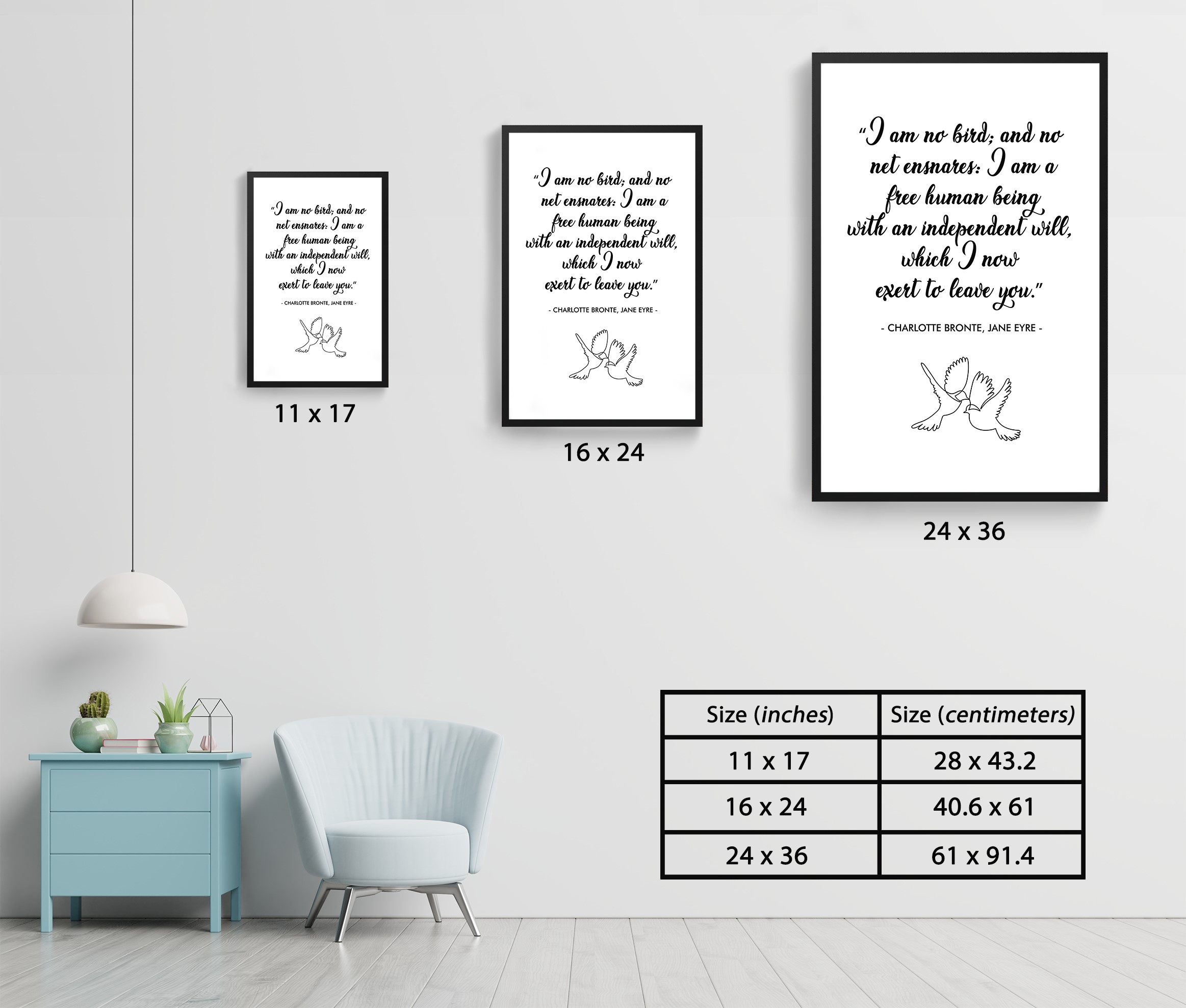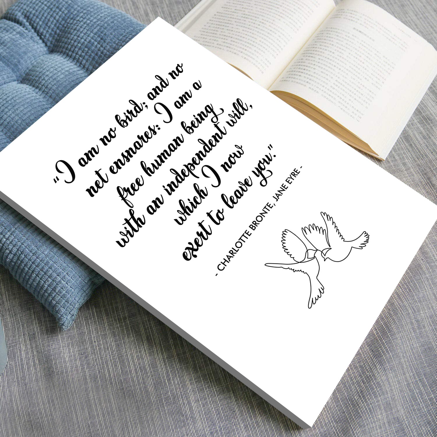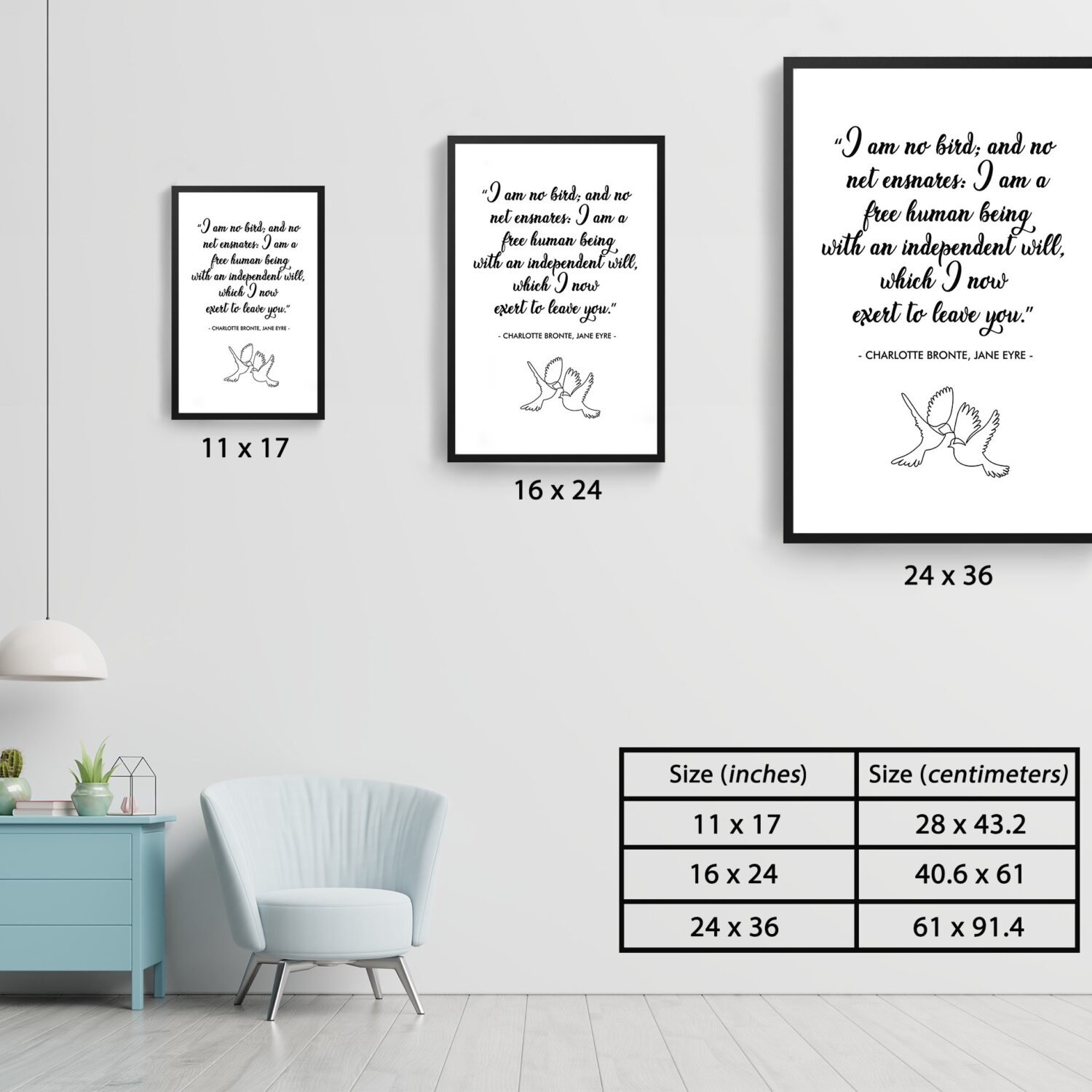 Embrace independence and strength with this elegant motivational wall art featuring a timeless quote from Charlotte Brontë’s Jane Eyre: “I am no bird; and no net ensnares: I am a free human being with an independent will.” This beautifully designed poster serves as a daily affirmation of freedom, self-worth, and resilience.
