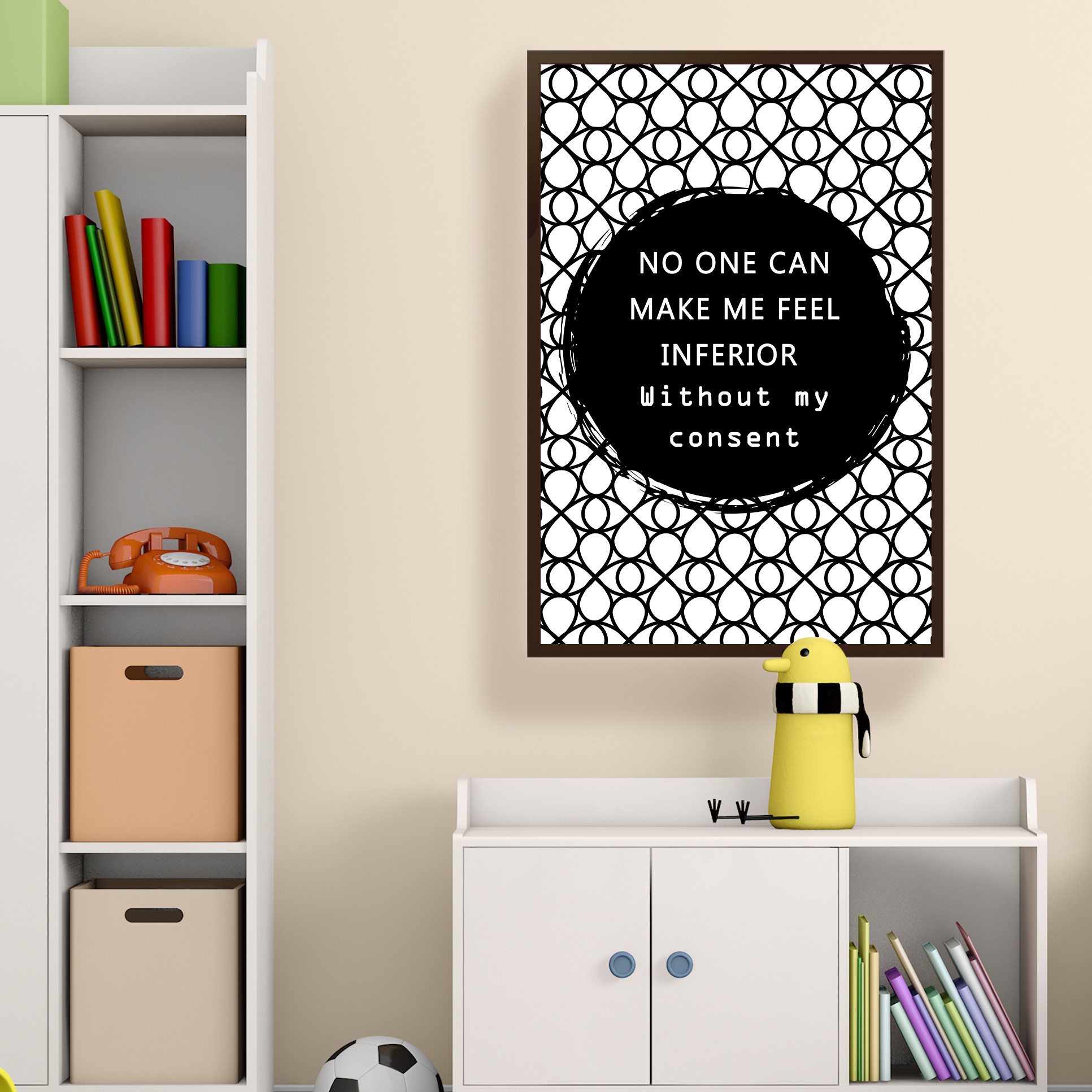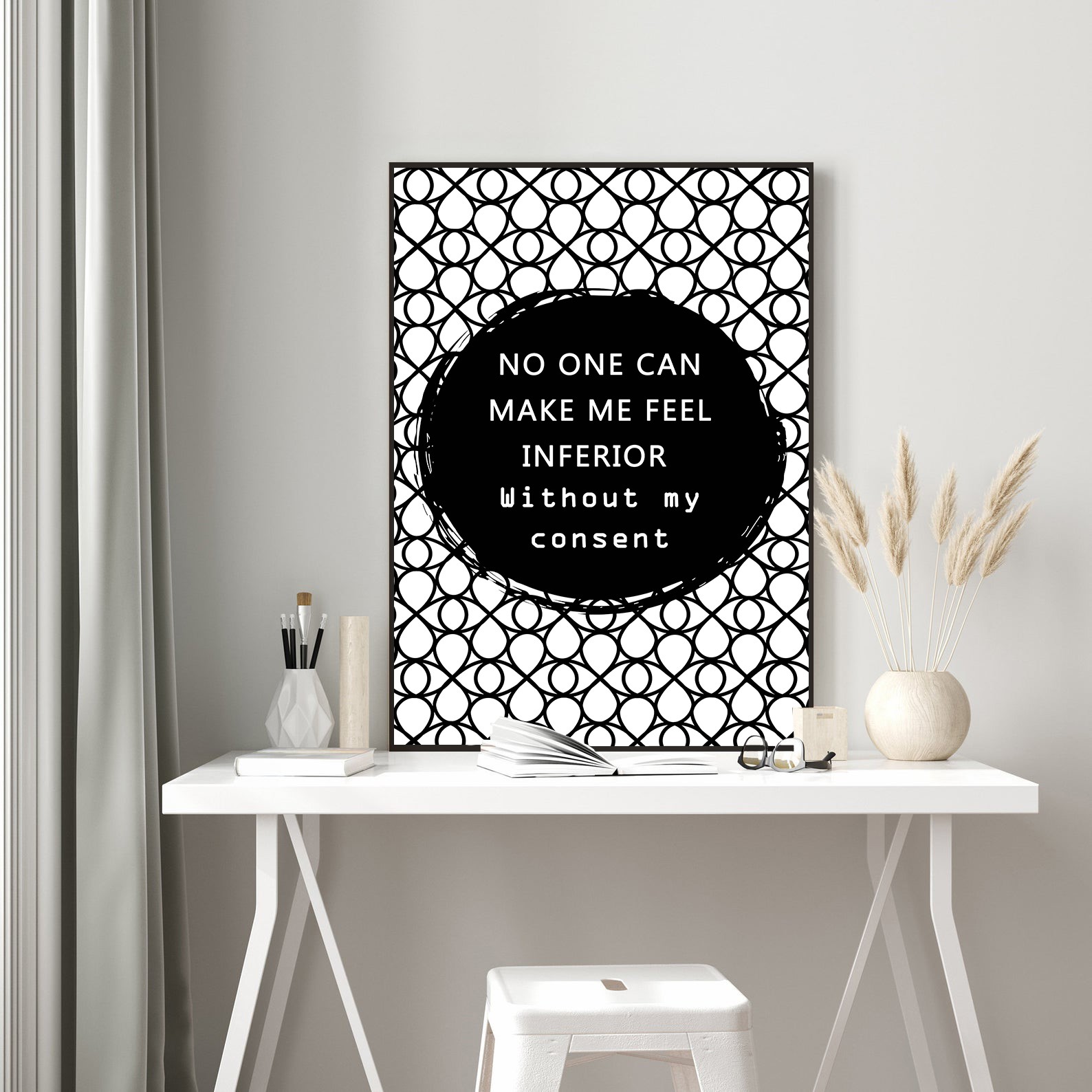 Empower yourself daily with this inspirational wall art featuring the iconic quote: “No one can make me feel inferior without my consent.” A powerful affirmation of confidence and self-worth, this poster serves as a daily reminder to embrace your strength and value.