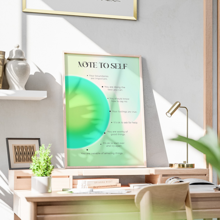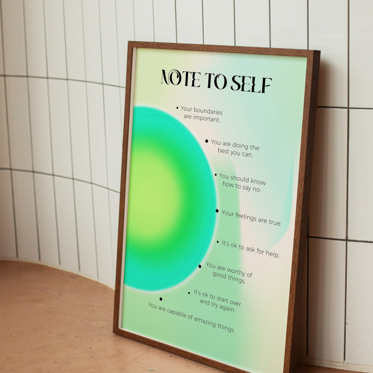 Note to Self Aura Wall Art radiates colorful positive energy. Embrace the power of spiritual art and bring an aura of positivity into your home.