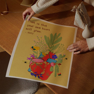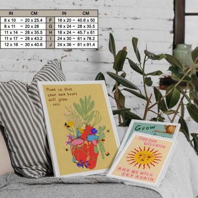 Plant Own Heart colorful mental health Wall Art that features a message of positivity, this Wall Art is perfect for inspiring and uplifting.