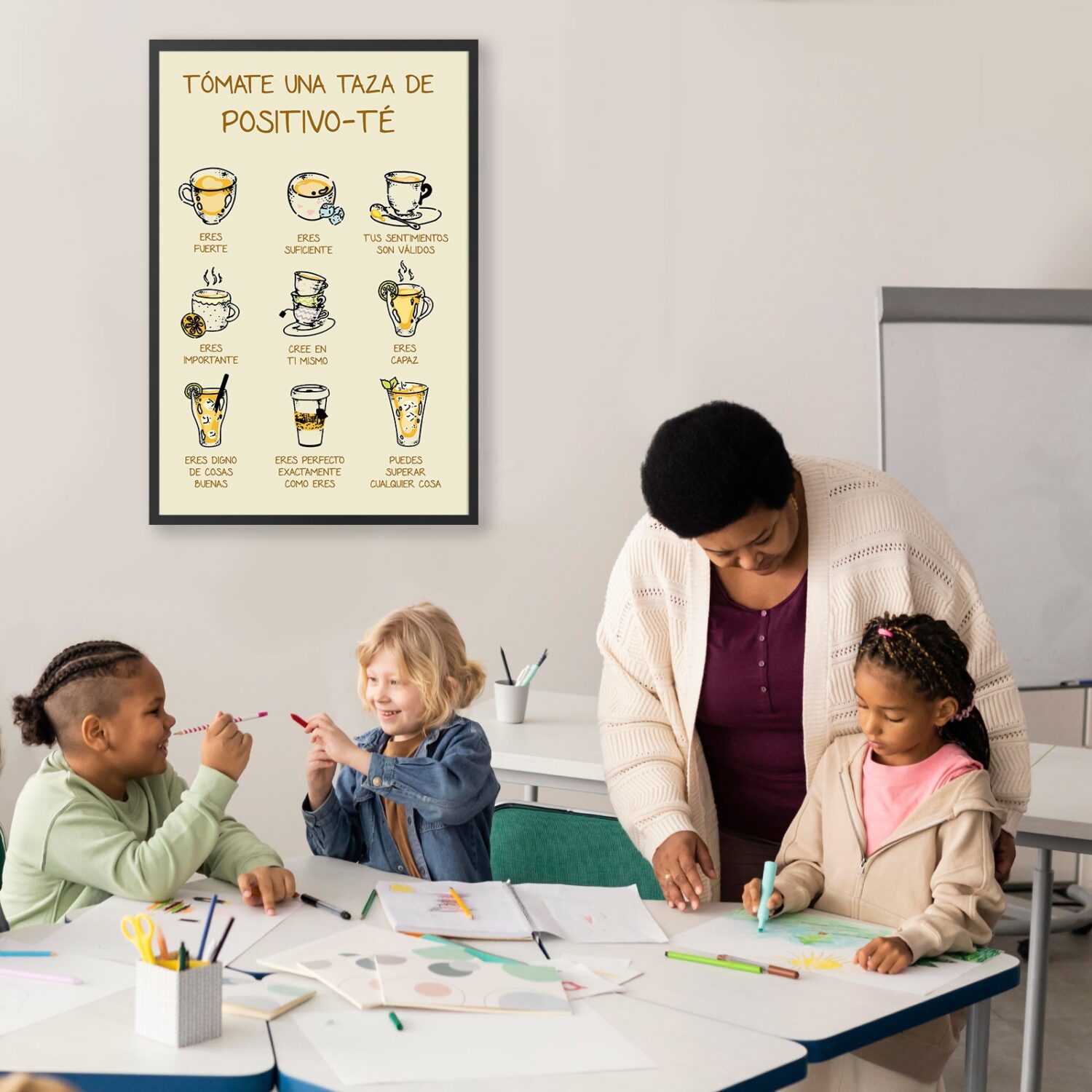 Add a touch of warmth and encouragement to your therapy office, school counseling space, or calm corner with this beautifully illustrated Spanish mental health poster. Featuring the uplifting phrase “Tómate una Taza de Positivo-Té,” this design pairs charming hand-drawn tea cups with inspiring affirmations to foster self-love, confidence, and emotional well-being. A perfect addition for school counselors, therapists, and psychologists looking to create a supportive environment.