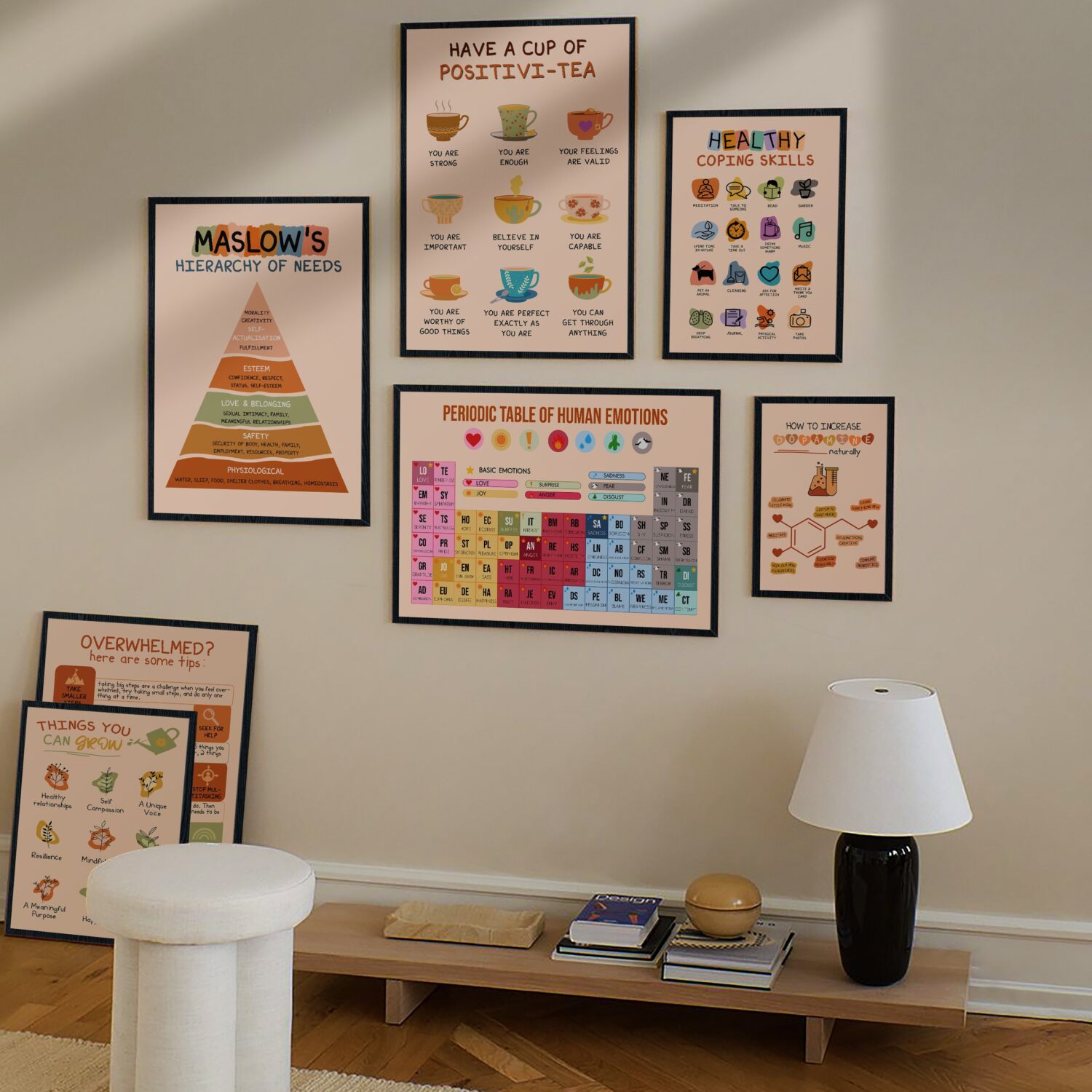 - Boho Aesthetic with a Cozy Feel – Earthy colors and delicate illustrations make it a beautiful therapist’s office décor piece.