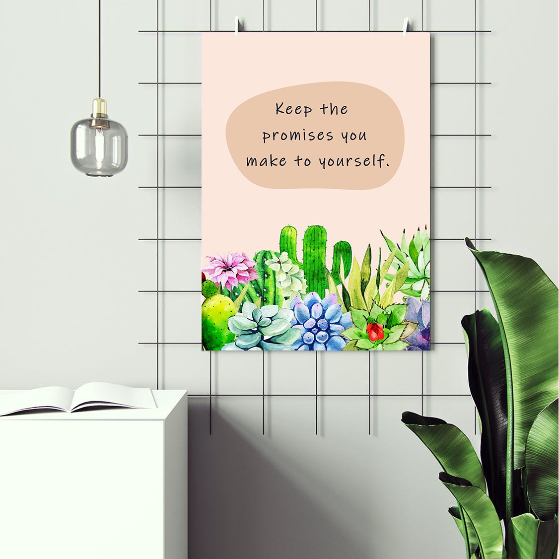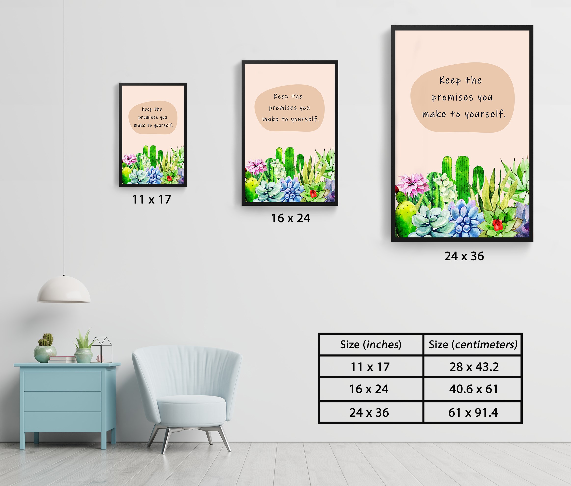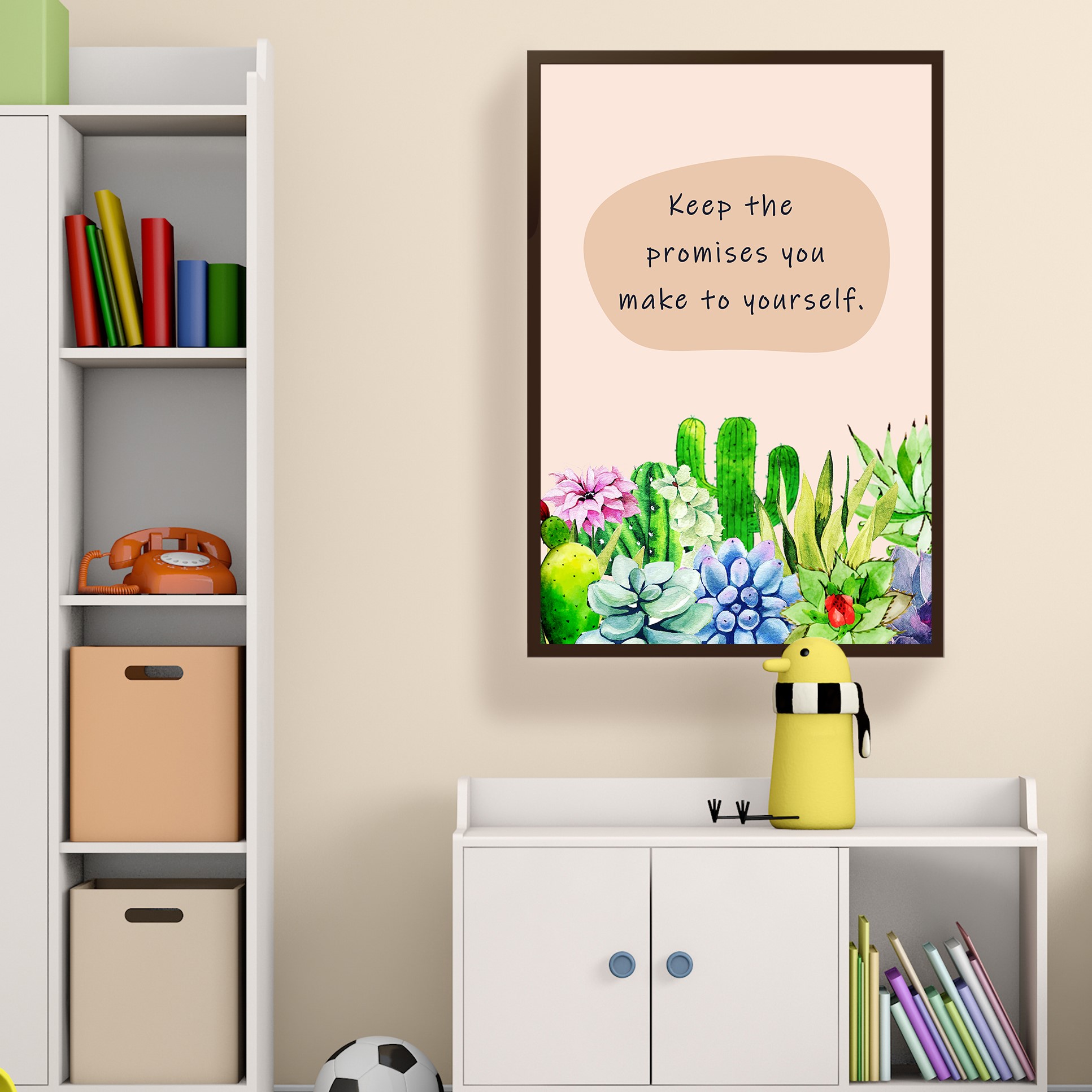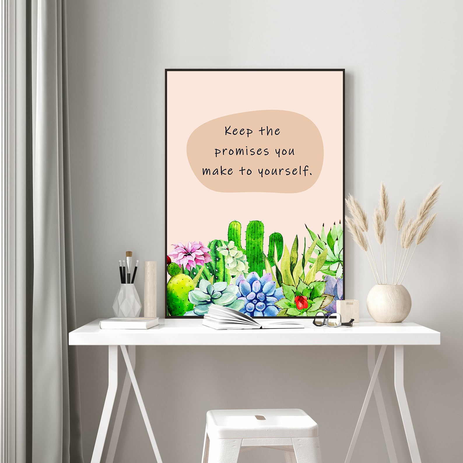 Honor your personal commitments with this motivational growth mindset poster. Featuring the powerful message, “Keep the promises you make to yourself,” this piece serves as a daily reminder to stay true to your goals and aspirations.