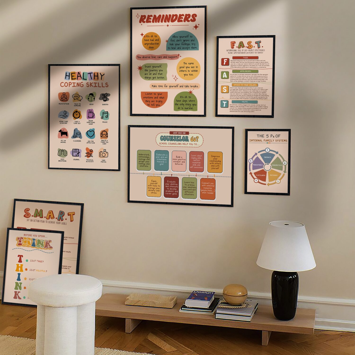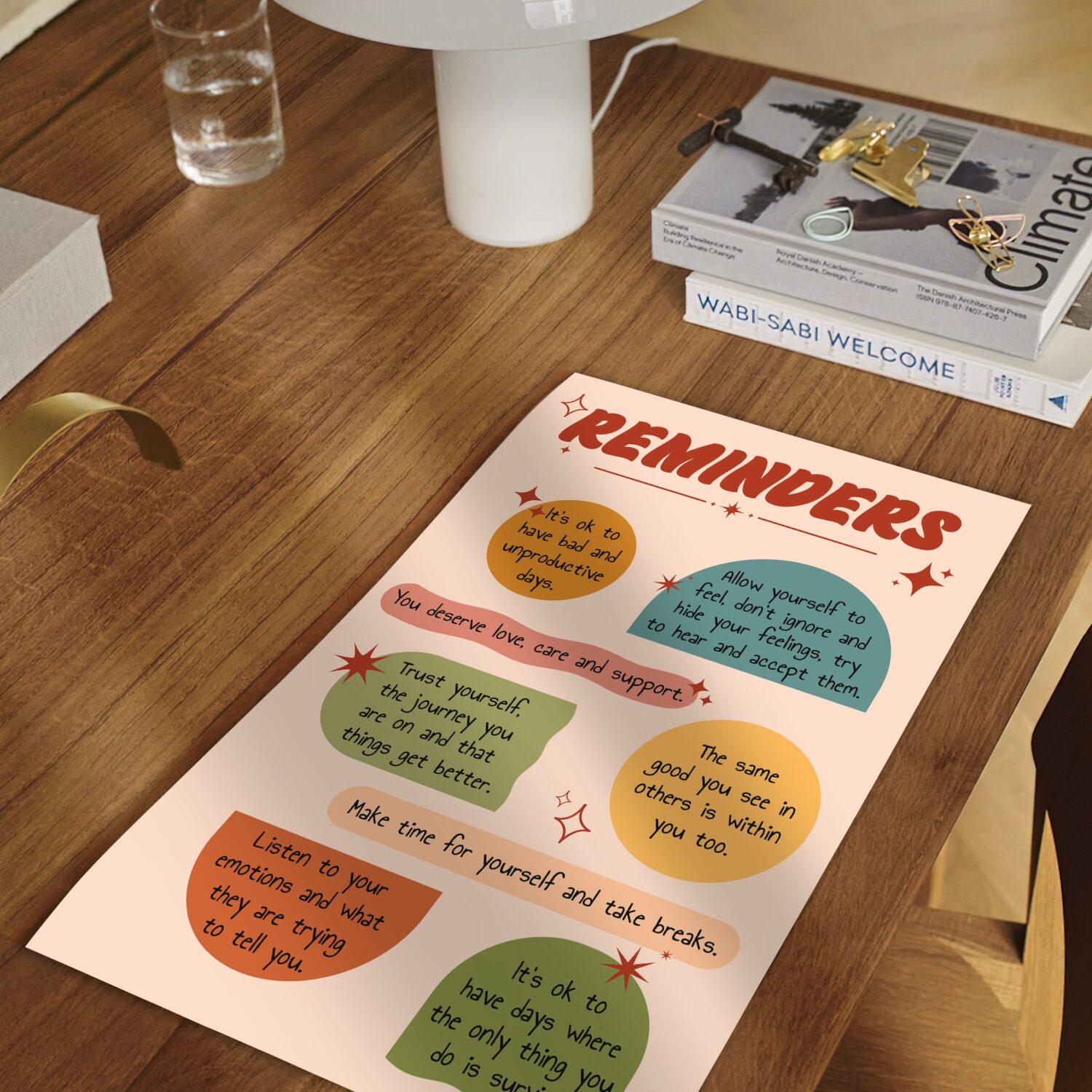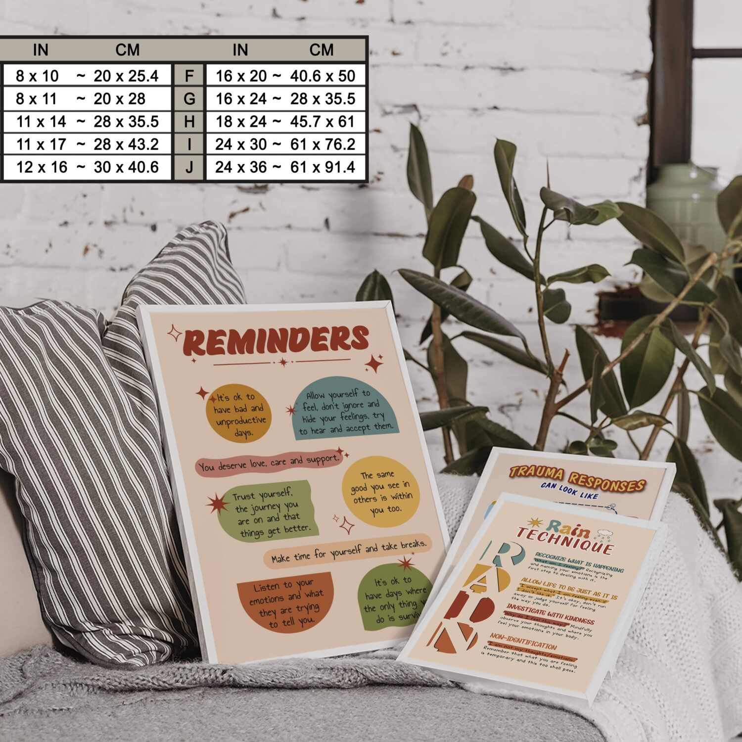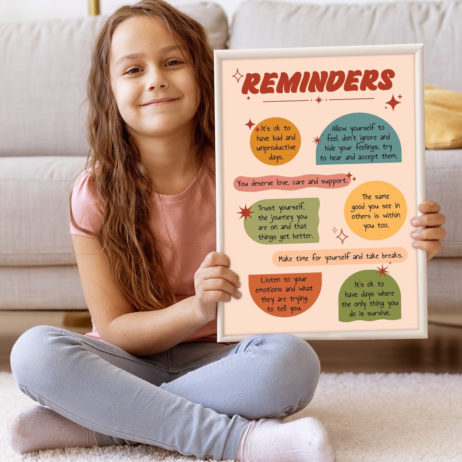 Reminders Affirmation Boho Mental Health Wall Art printable wall art for modern mental health decor. Ideal for therapy offices, classrooms, and home walls. Instant digital download with high-resolution files ready to print and frame.