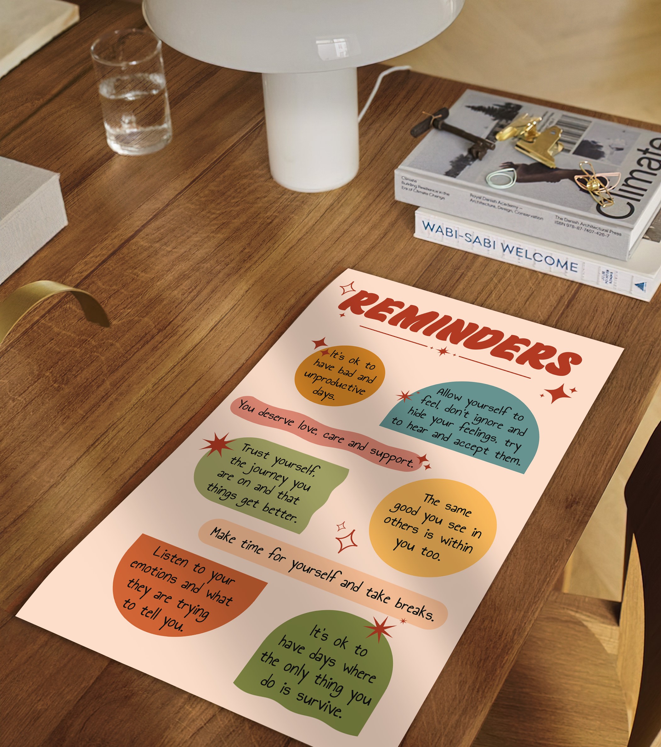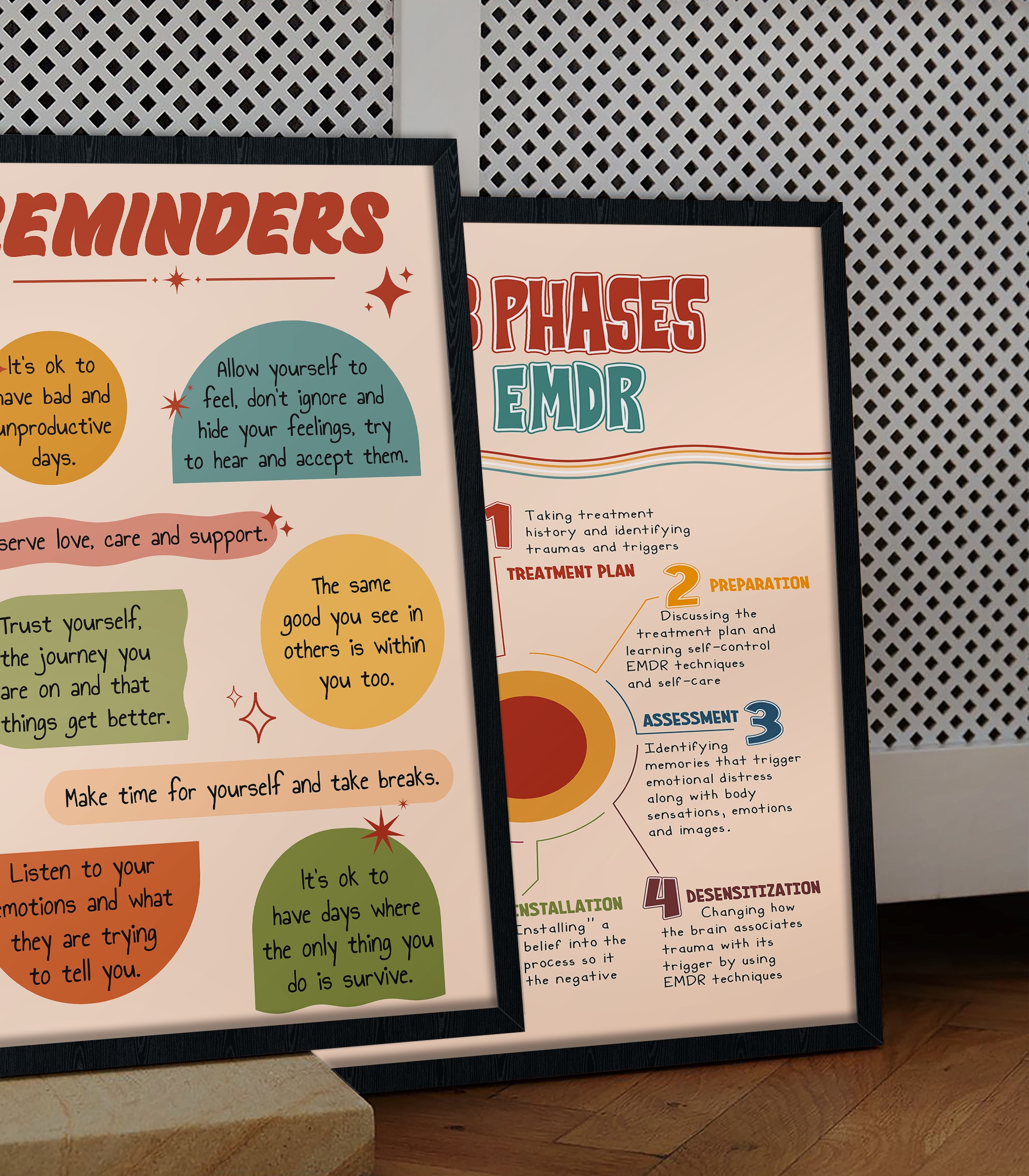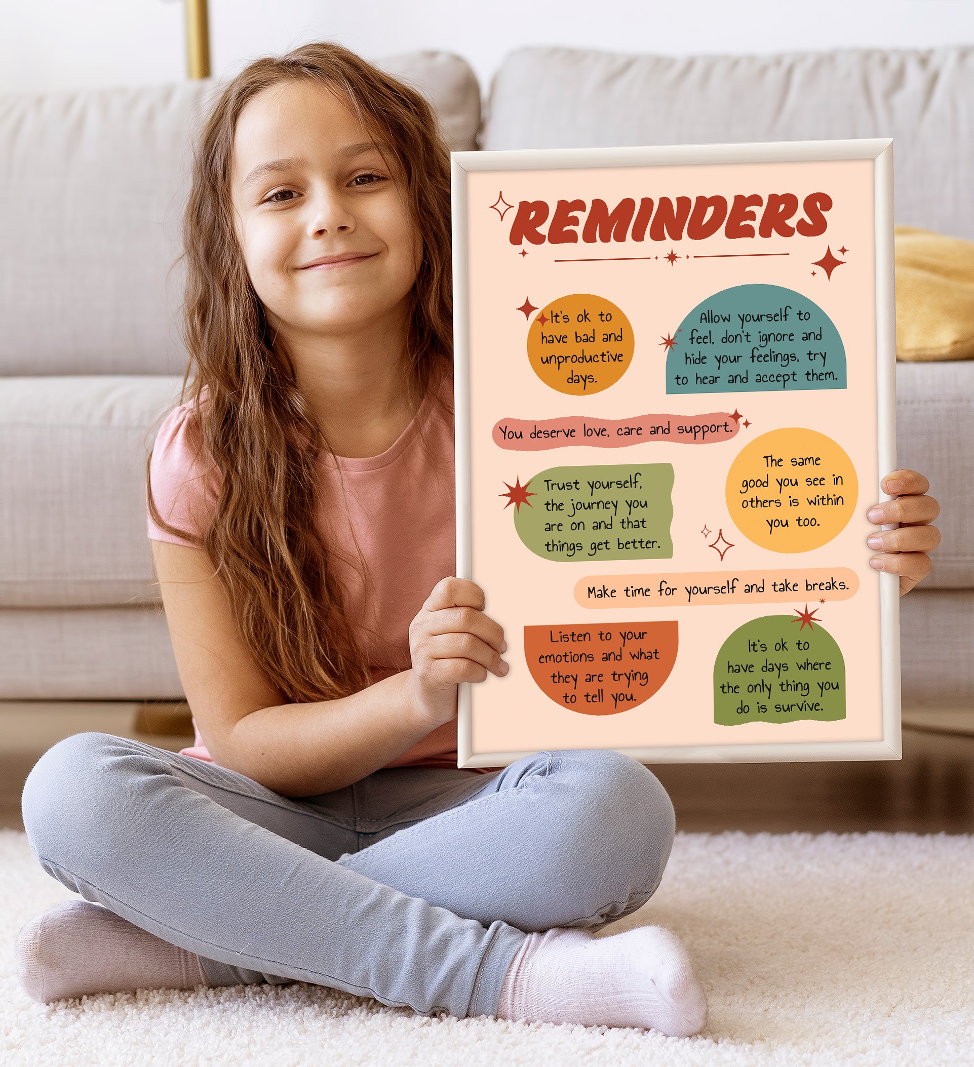 Encourage self-compassion and emotional well-being with this beautifully designed mental health reminders poster. Featuring soothing boho-inspired visuals and gentle affirmations, this calming corner essential helps individuals embrace self-care and self-acceptance. Perfect for therapy offices, classrooms, counseling spaces, and personal self-care areas, this inspiring decor piece fosters a supportive and uplifting environment.