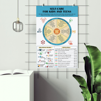 Encourage healthy habits with this self-care educational tool designed for kids and teens. This Art Print self-care wheel provides practical strategies for maintaining mental, emotional, and physical well-being. A perfect resource for school psychologists, therapists, counselors, and educators.