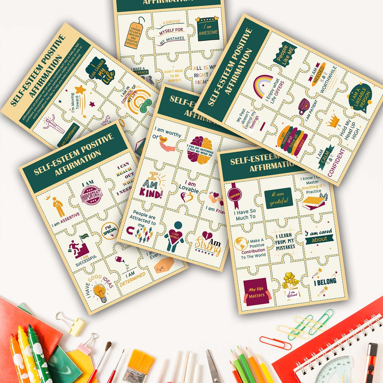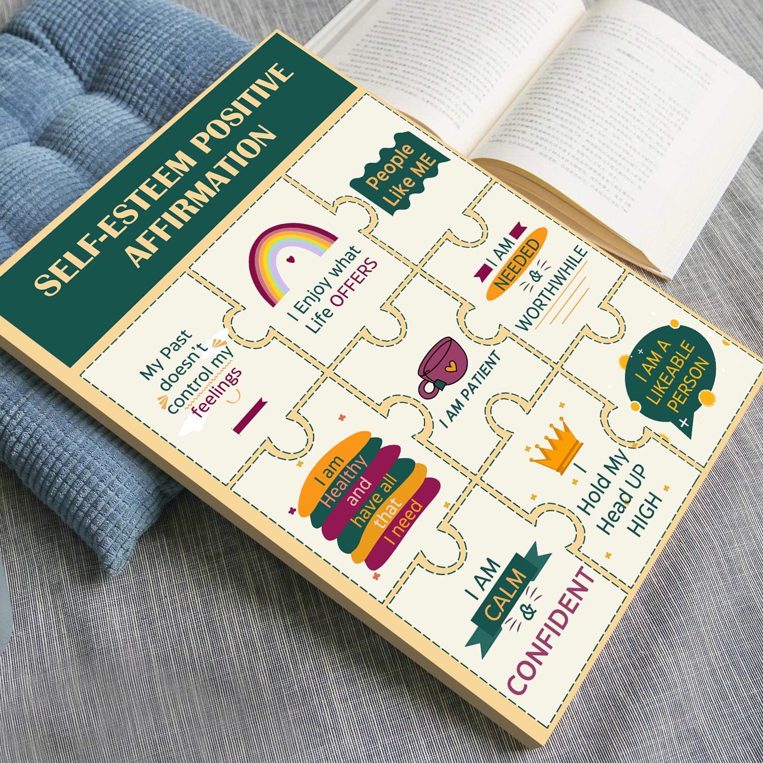 - Engaging & Thoughtful Design – Features puzzle-piece affirmations with vibrant, calming colors and visually appealing elements.