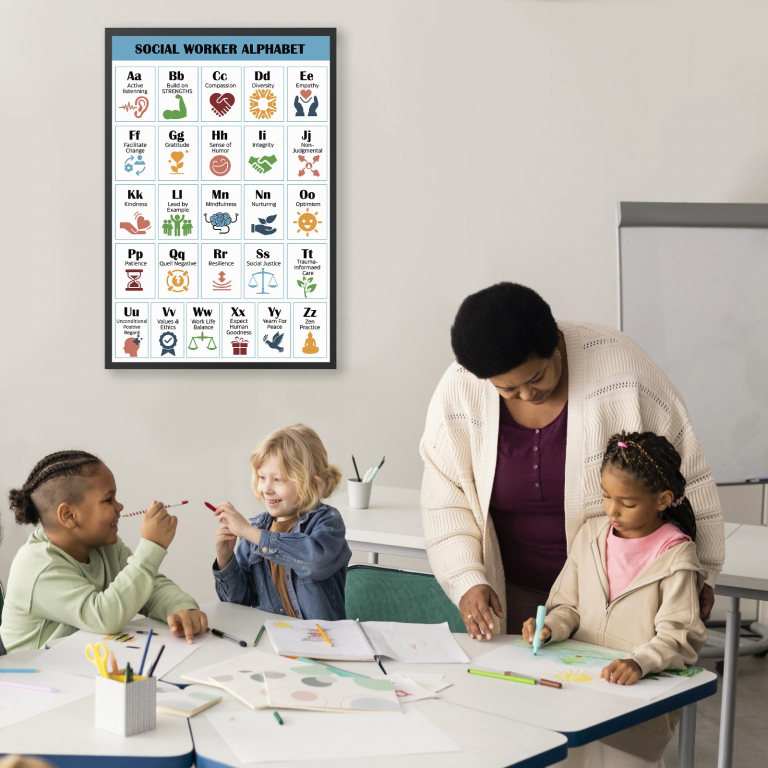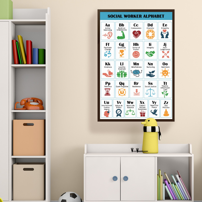 Social Worker Alphabet Mental Health Printable printable wall art for modern mental health decor. Ideal for therapy offices, classrooms, and home walls. Instant digital download with high-resolution files ready to print and frame.