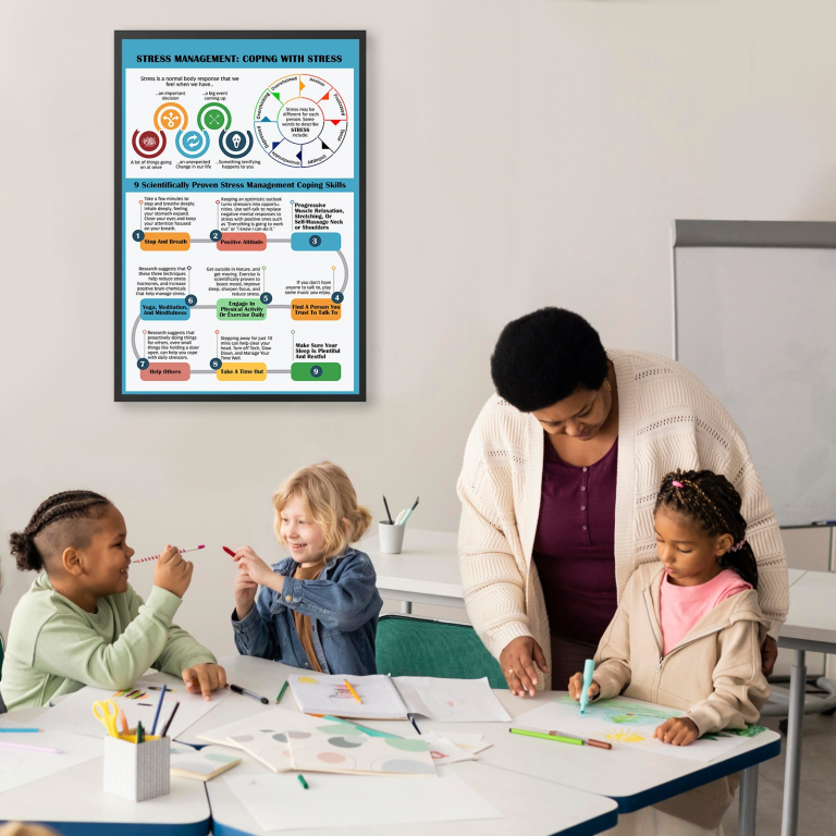 Stress Management Coping Skills Printable printable wall art for modern mental health decor. Ideal for therapy offices, classrooms, and home walls. Instant digital download with high-resolution files ready to print and frame.
