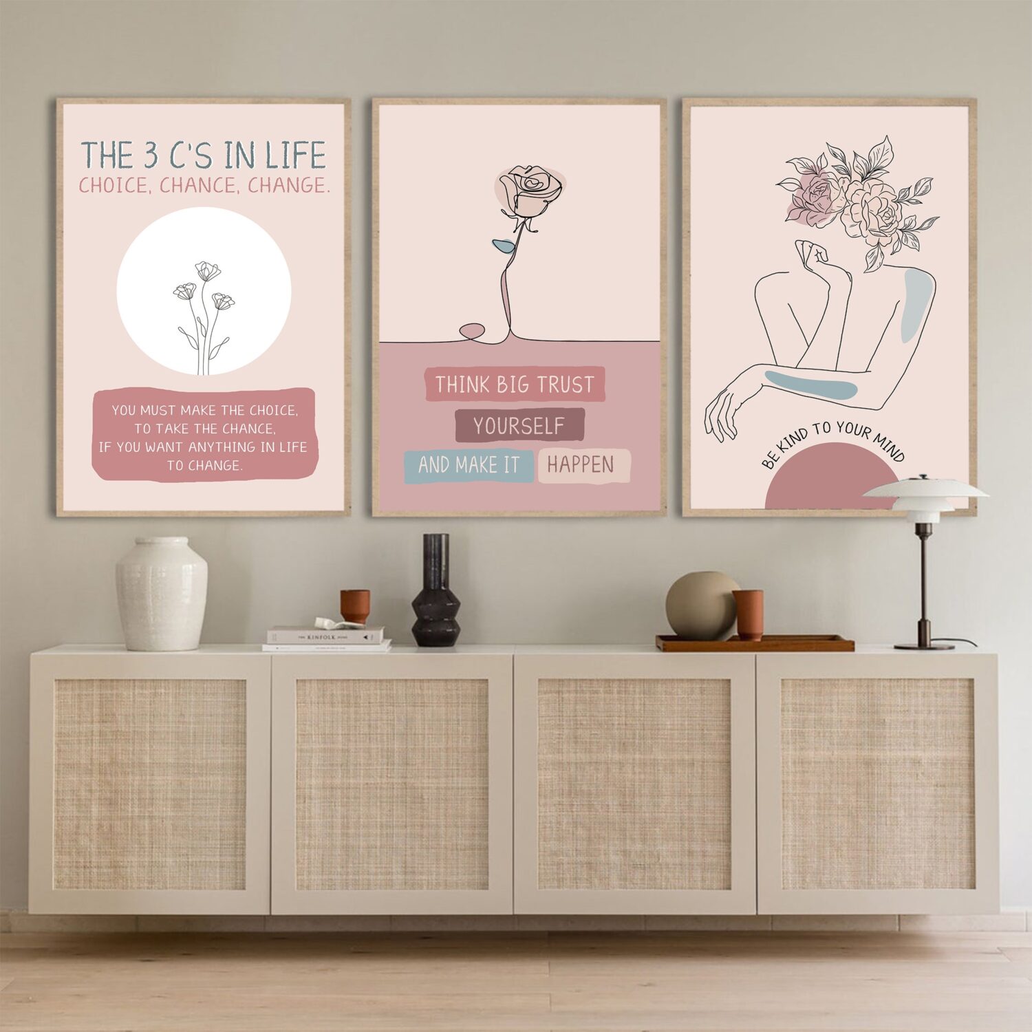 Life is all about choice, chance, and change. This elegantly designed mental health poster serves as a daily reminder to embrace transformation and take the steps toward self-growth. With a soft pink mental health-inspired color palette and minimalist floral artwork, this piece embodies positivity, self-love, and motivation.